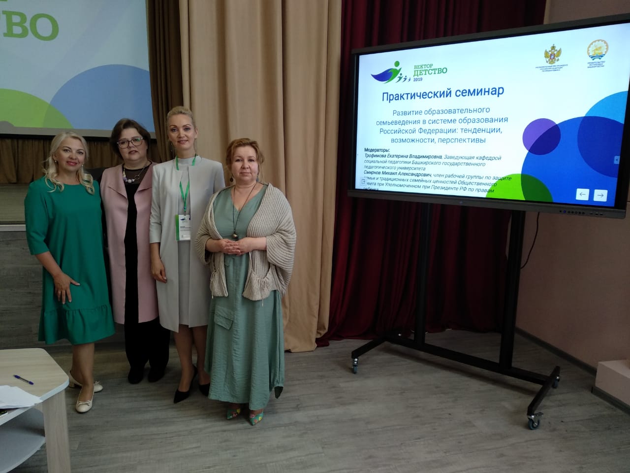 16 мая 2019 года на базе МБОУ «Лицей № 1» г.о. Уфа Республики Башкортостан состоялся практический семинар «Развитие образовательного семьеведения в системе образования РФ: тенденции, возможности, перспективы». Данный семинар проводился в рамках Всероссийского конгресса «Вектор - Детство 2019» и съезда Уполномоченных по правам ребенка в субъектах РФ. Модераторам семинара выступили член рабочей группы по защите семьи и традиционных семейных ценностей Общественного совета при Уполномоченном по правам ребенка РФ Смирнов Михаил Александрович и и.о. заведующей кафедры социальной педагогики БГПУ им. М. Акмуллы Трофимова Екатерина Владимировна.