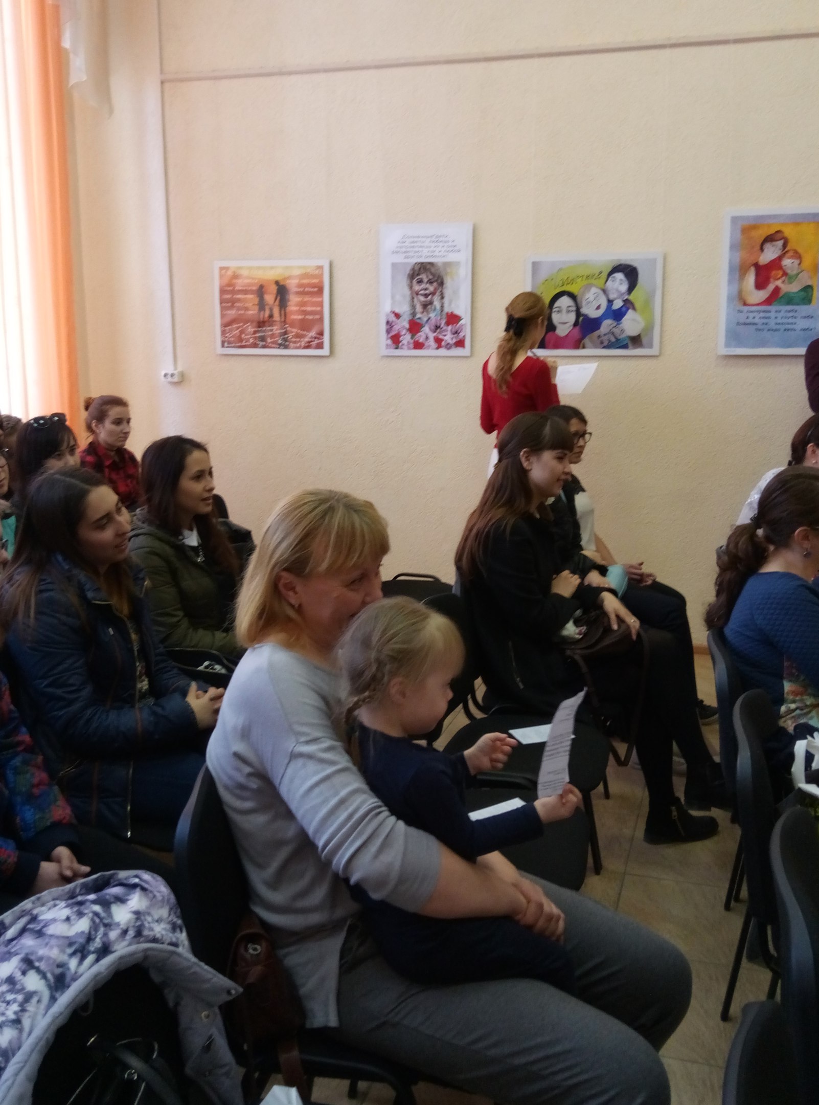 Выставке предшествовала большая подготовительная работа. Это встреча с директором организации "СоДействие" Людмилой Ивановной Сахаповой, изучение материалов по проблемам детей-инвалидов, знакомство и общение непосредственно с детьми и их родителями, поиск идеи и работа над плакатом, подготовка работ к экспонированию, разработка афиши и буклетов и т.д.