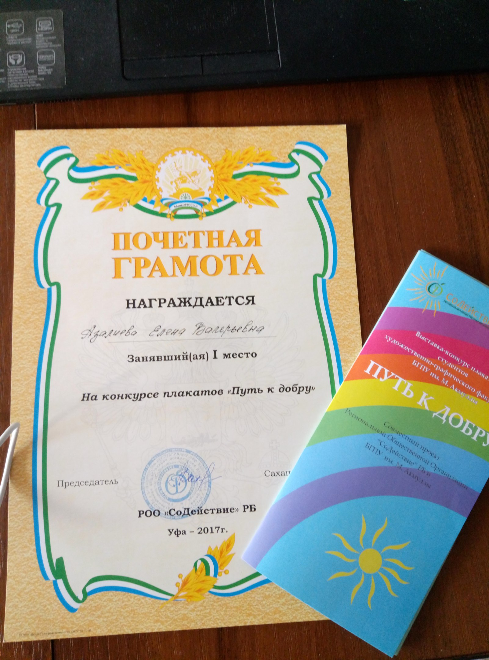 Открытие выставки прошло в теплой доброжелательной атмосфере. Дети даже подготовили небольшой концерт для гостей мероприятия, а родители - подарки для победителей. Победителями очного тура конкурса стали Азалиева Елена с плакатом "Дети словно маленькие солнца" (1 место), Исламгулова Алия с серией работ "Человек с синдромом Дауна" (2 место) и Теплякова Яна с плакатом "Социум перекрывает воздух" (3 место). Все остальные участники проекта награждены благодарственными письмами от РОО "СоДействие" РБ. Но конкурс на этом не завершился. До 31 мая проходит интернет-голосование на сайте Центральной городской библиотеки по ссылке: https://vk.com/album-67930619_244413565. Победитель будет награжден призом зрительских симпатий в День защиты детей - 1 июня.