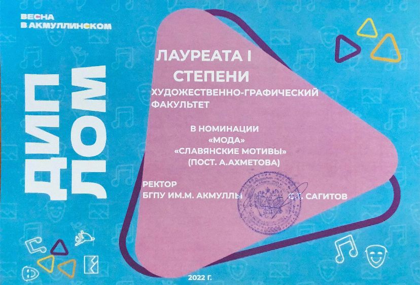 По итогам Гран-при фестиваля «Студенческая весна в Акмуллинском – 2022» художественно-графический факультет получил диплом III степени.