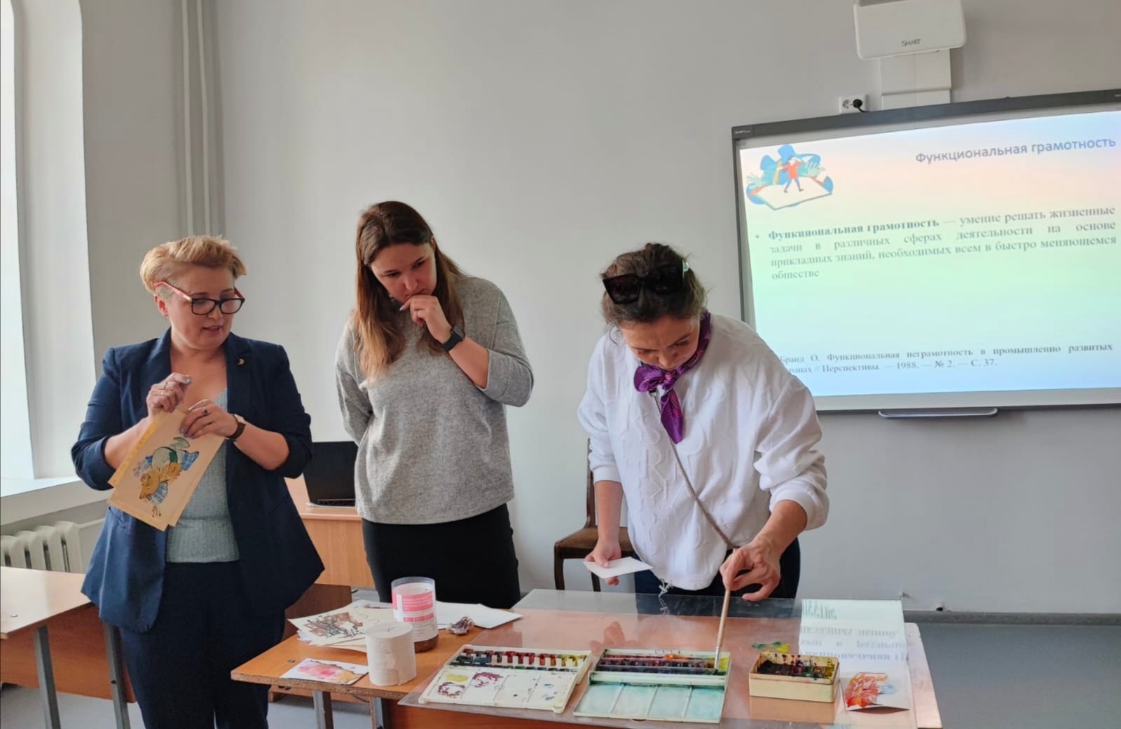 8 апреля на Художественно-графическом факультете прошел семинар для учителей изобразительного искусства и технологии города Уфы. Тема встречи «Роль функциональной грамотности в профориентации обучающихся». Выступили: доценты кафедры дизайн Дорофеева Е.Н., Муслимова  А.А., учителя МБАУ №18 школы Фаризова Р.И., Васильева Ю.В. Для участников семинара провели экскурсию по художественно – графическому факультету, а также провели мастер-классы на развитие креативного мышления.