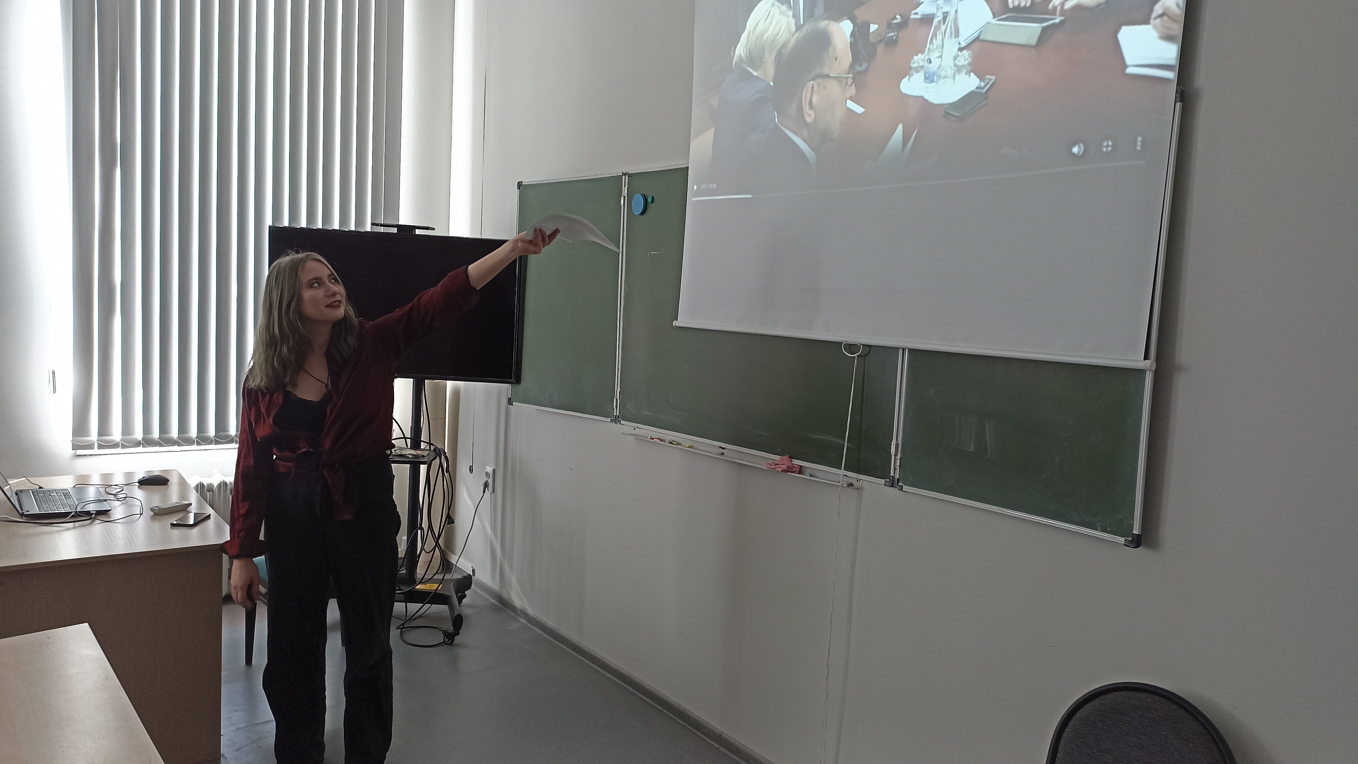 25.09 2023 на Художественно-графическом факультете прошло внеурочное мероприятие «Разговоры о важном». Студентка 5 курса направления ИЗО и технологии, Горяйнова Анна, провела беседу на тему избирательного права со студентами ДИЗКГА-11-23 и студентами ДПИД-21-22.