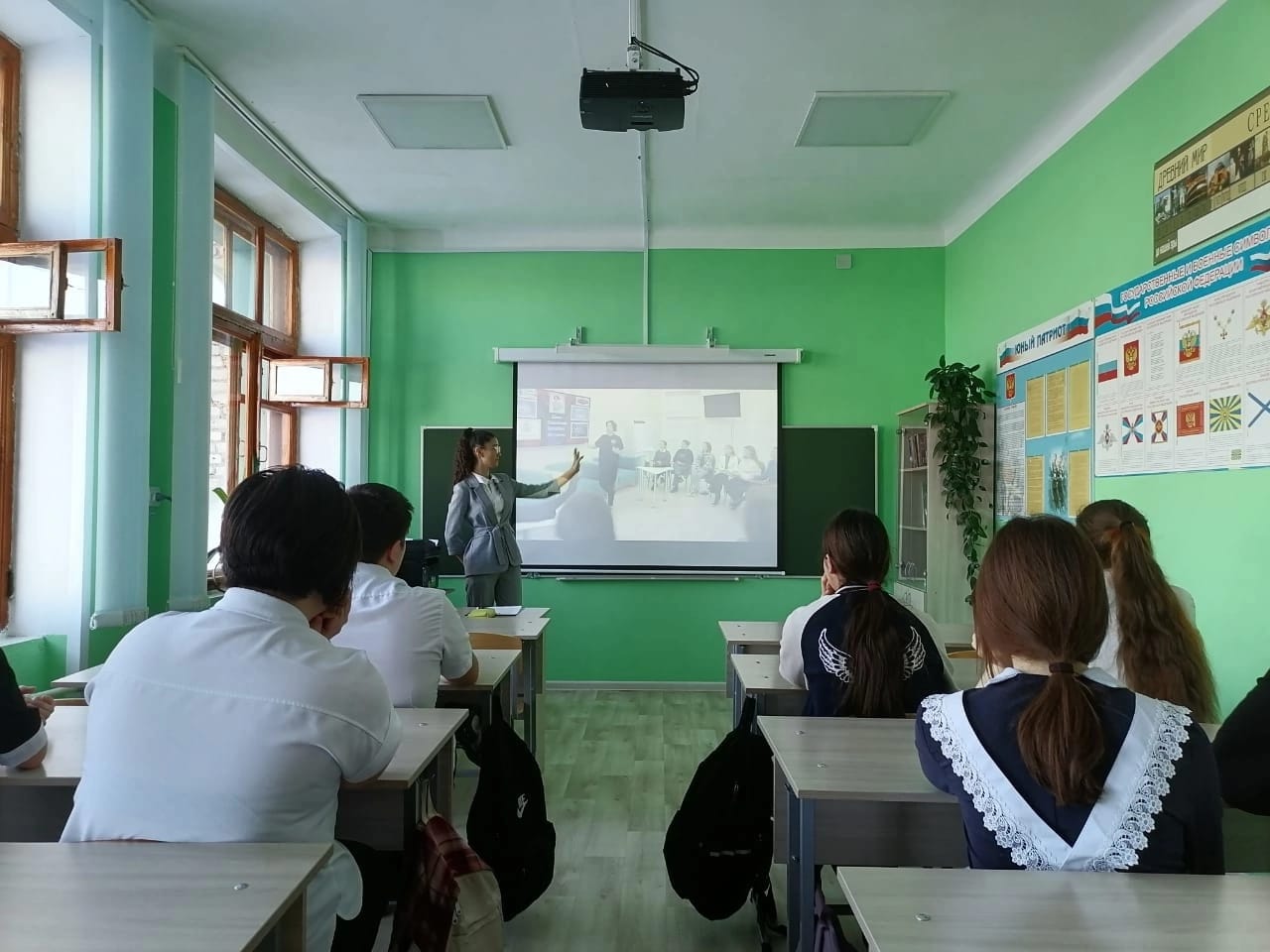 23 января 2024г., в рамках педагогической практики, была организована встреча с учащимися 10-11 классов МБОУ СОШ с. Старокалмашево со студенткой 3 курса художественно-графического факультета Сабгияновой Динарой Рауфовной. Динара провела профориентационную беседу для старшеклассников, познакомила ребят с университетом, рассказала о бюджетных местах и направлениях обучения. Проинформировала о работе факультетов, институтов и колледжа БГПУ.
