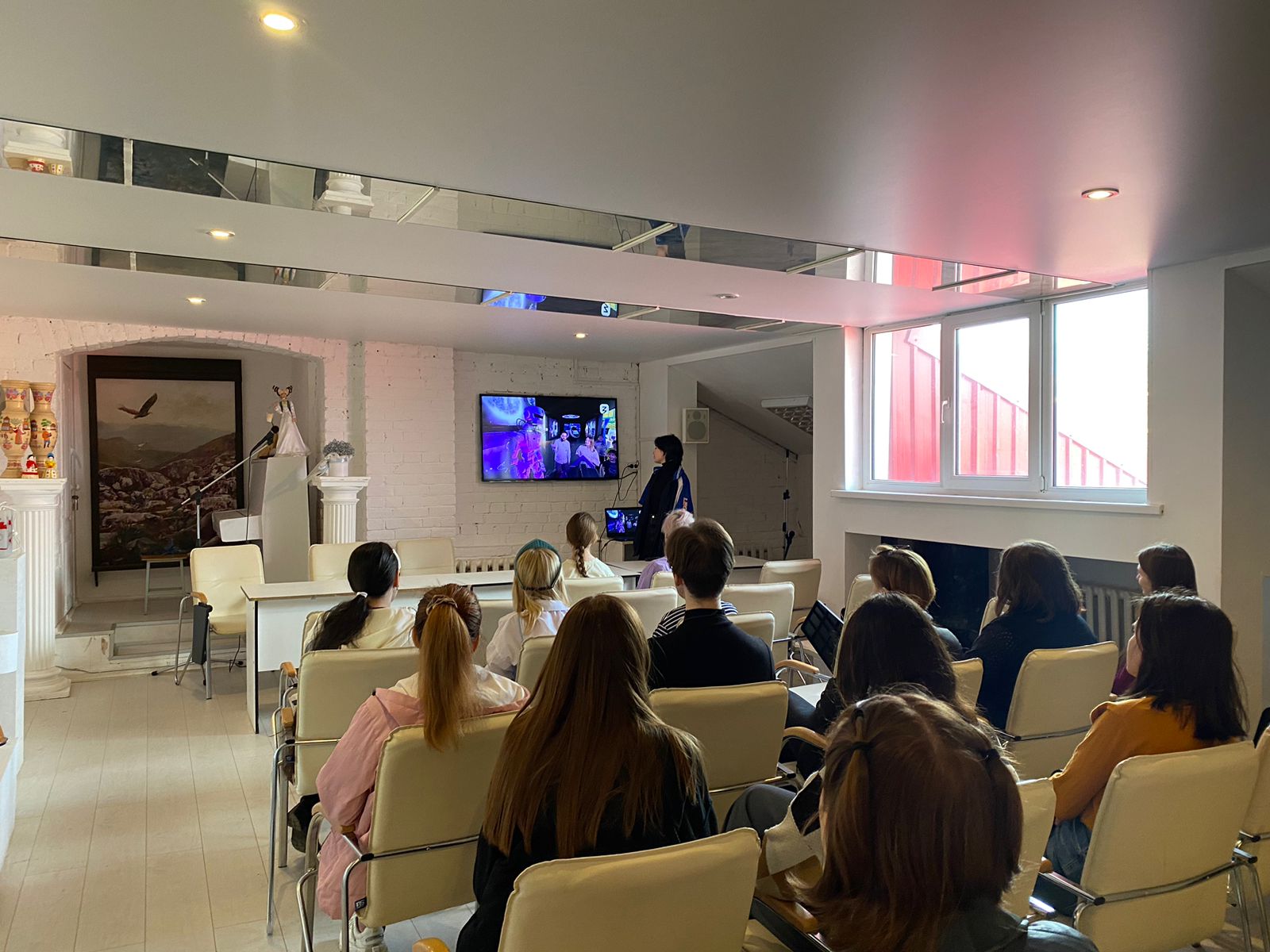 11 апреля на ХГФ в рамках внеучебного мероприятия Разговоры о важном студентка ДИЗКГА-11-23  Соложенцева Елена провела профориентационное занятие Россия- мои горизонты. Темой дня, в преддверии дня космонавтики, стала тема: Россия космическая: узнаю о профессиях и достижениях в космической отрасли. Ребята просмотрели предложенные видеоролики и обсудили тему освоения космического пространства, отросли и профессии, появившиеся в этой сфере. И, в том числе, влияние эры освоения космоса на дизайн в целом.