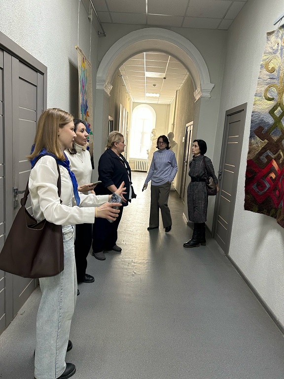Учителя - наставники посетили выставку студенческих работ, посвящённую блокадному Ленинграду, а также провели обзорную экскурсию по художественно-графическому факультету, где рассмотрели выпускные квалификационные проекты студентов.