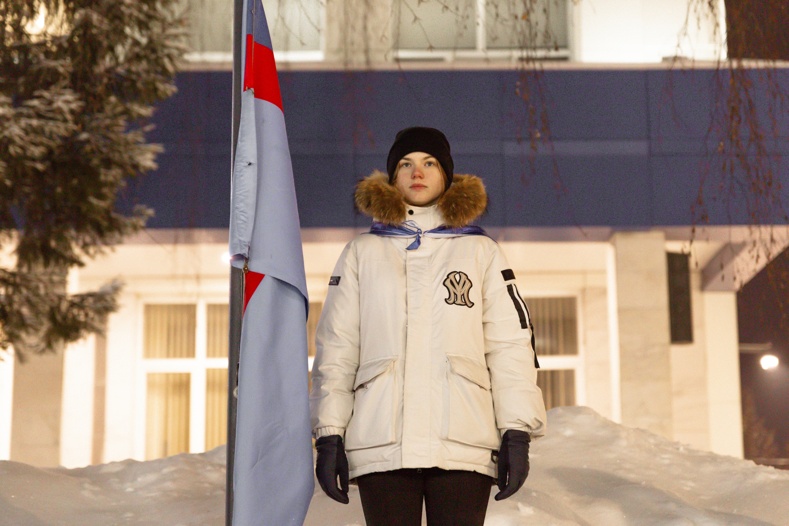 Почетное право поднять флаги на площади перед вузом было предоставлено студентам, имеющим особые достижения в общественной, культурной, научной и учебной деятельности: