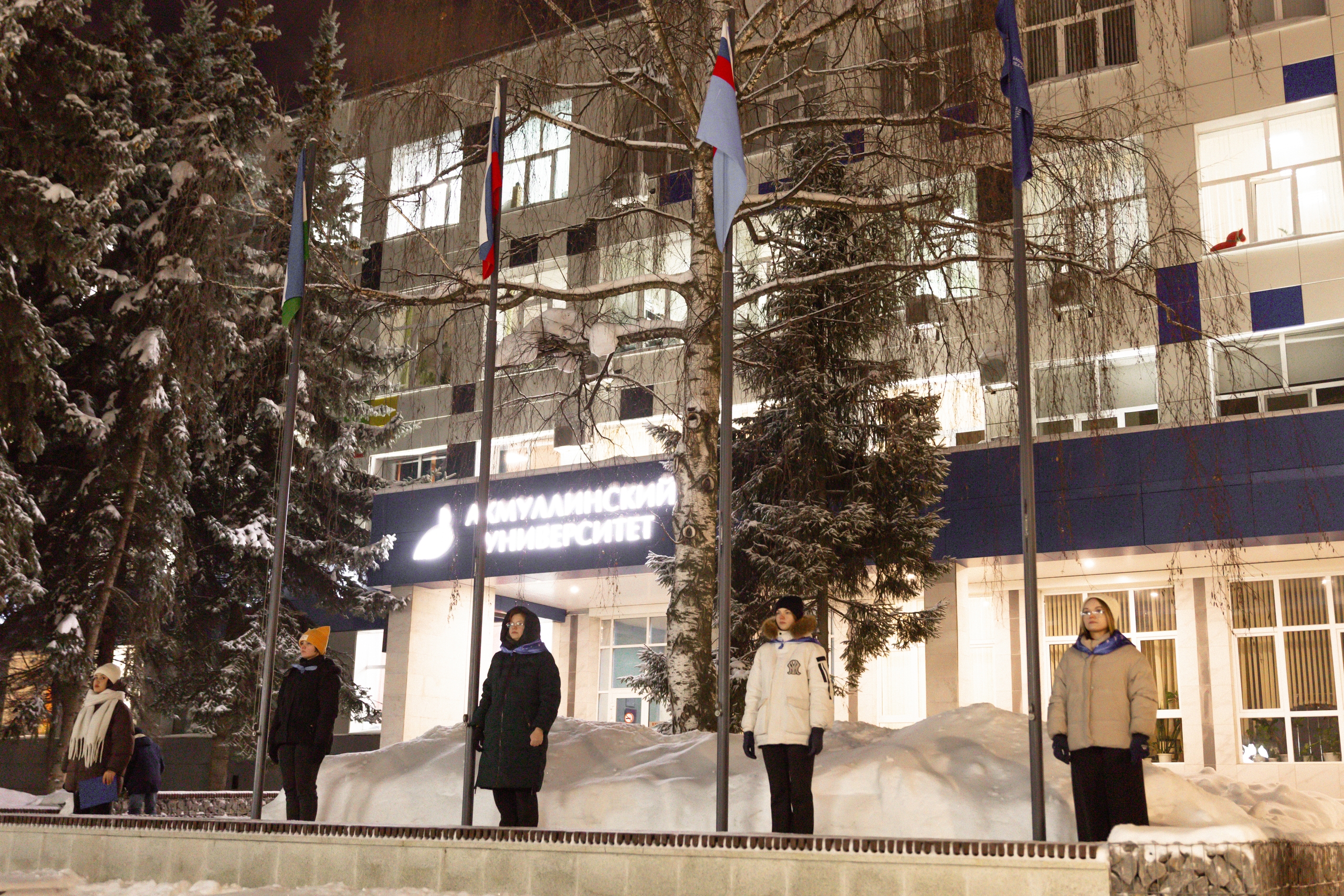 Новая неделя в Акмуллинском университете началась с традиционной церемонии поднятия государственных флагов Российской Федерации и Республики Башкортостан, флагов Министерства просвещения России и Акмуллинского университета. Участниками ее стали студенты и преподаватели художественно-графического факультета.