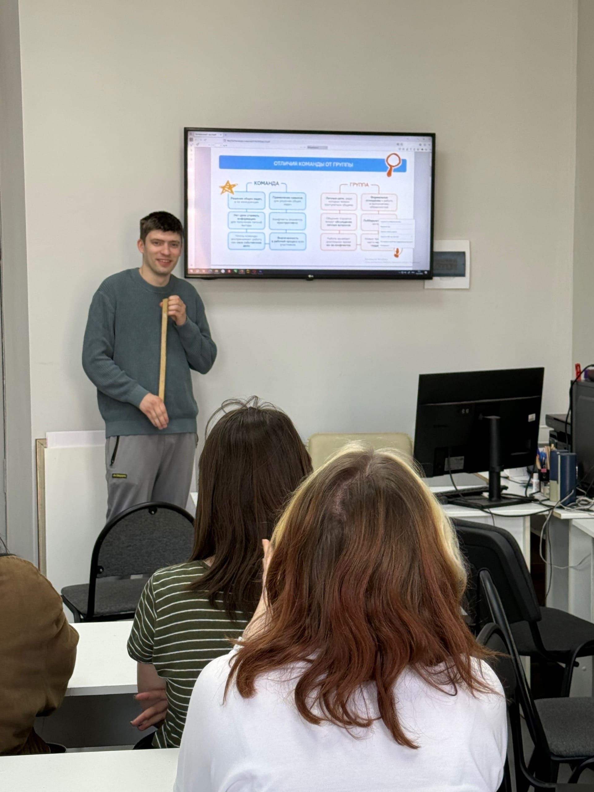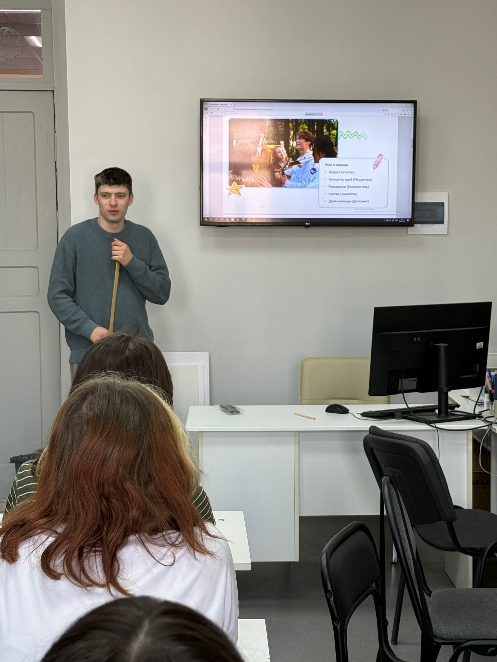 27 апреля состоялся разговор о важном на тему: «Что значит работать в команде? Сила команды». В ходе разговора о важном мы подробно разобрали понятия «команда» и «группа», изучили их отличия и особенности, что позволило понять важность правильного взаимодействия в коллективе. В качестве примера была рассмотрена деятельность студенческого совета — дружной команды, которая всегда готова прийти на помощь и где отсутствуют разногласия.