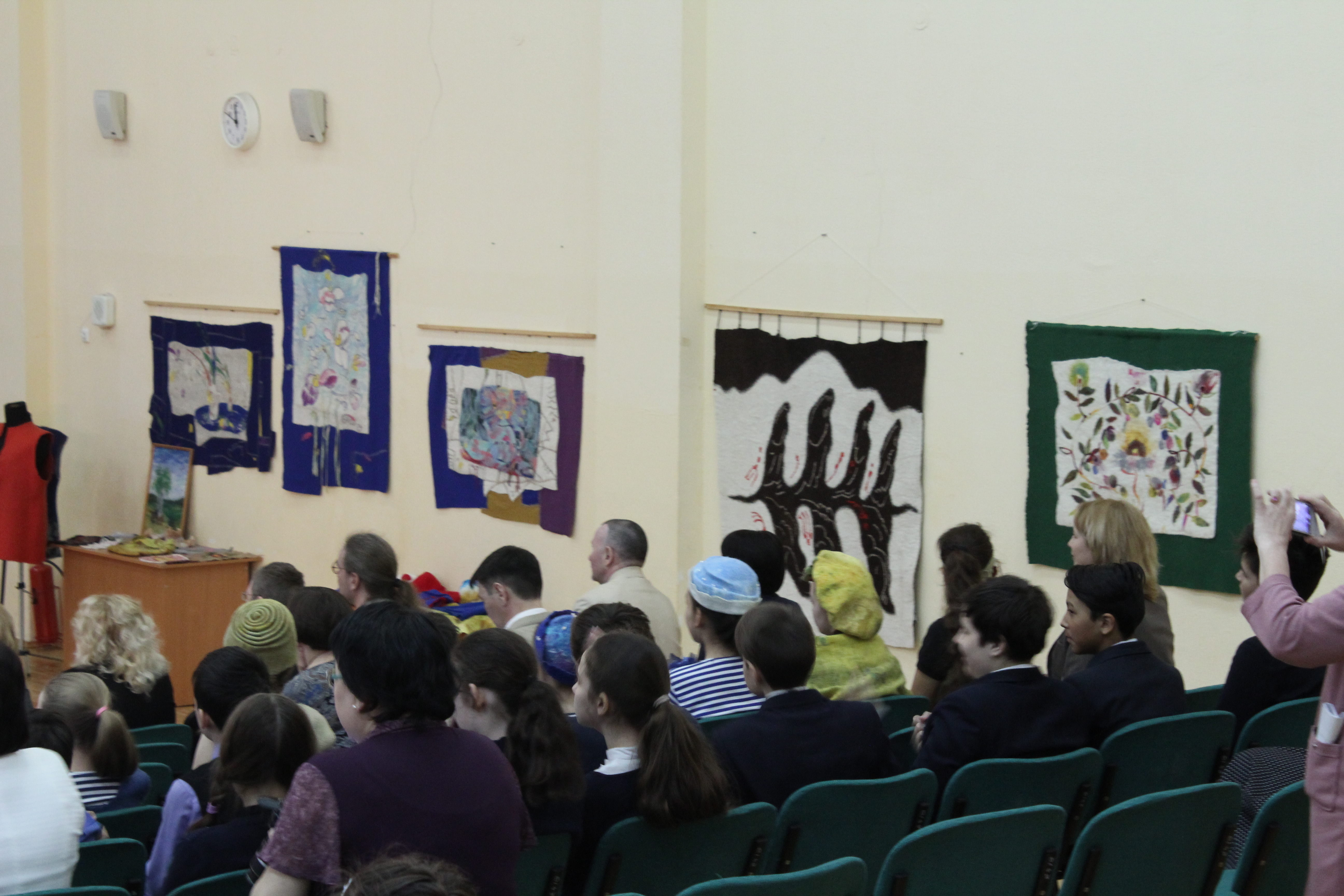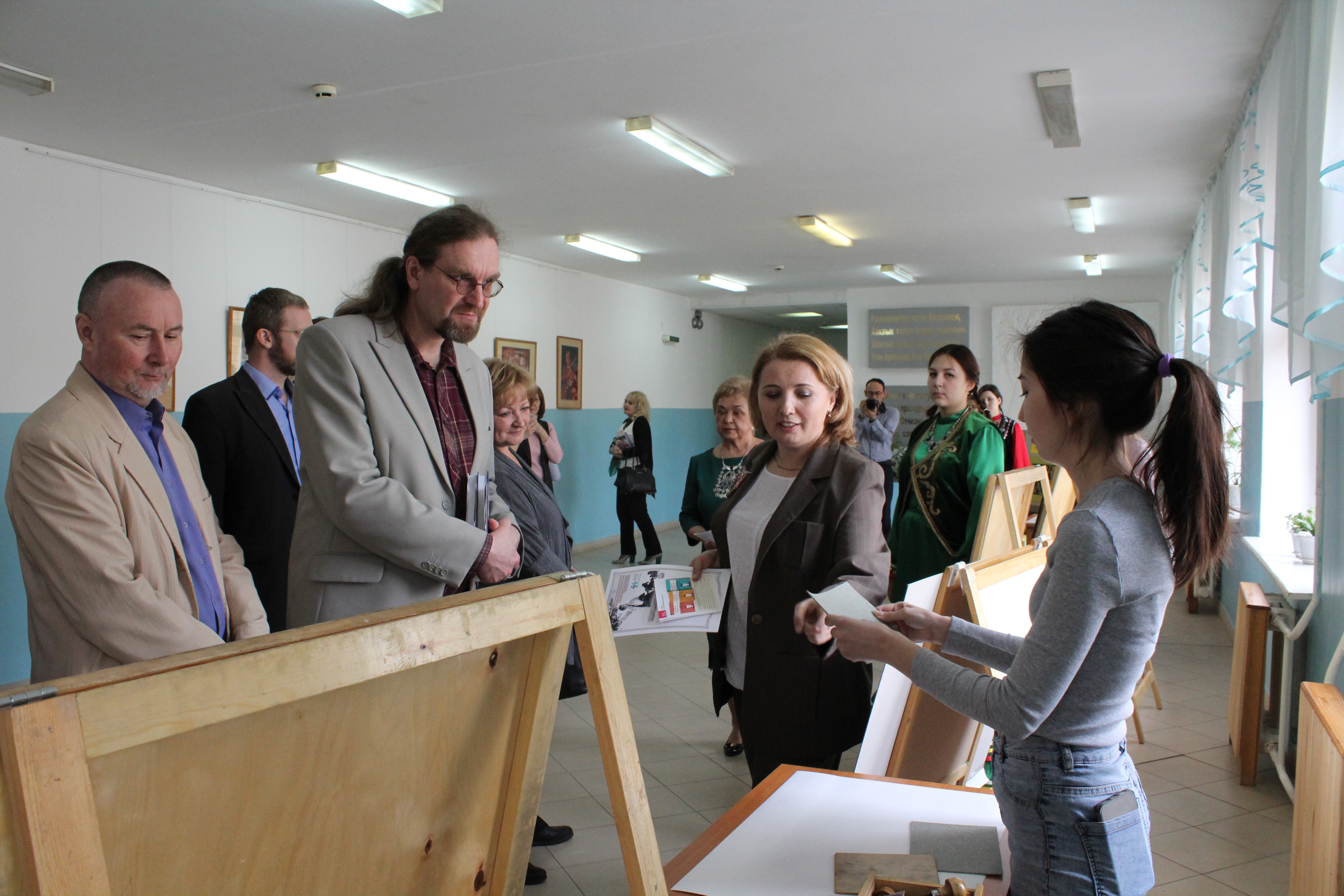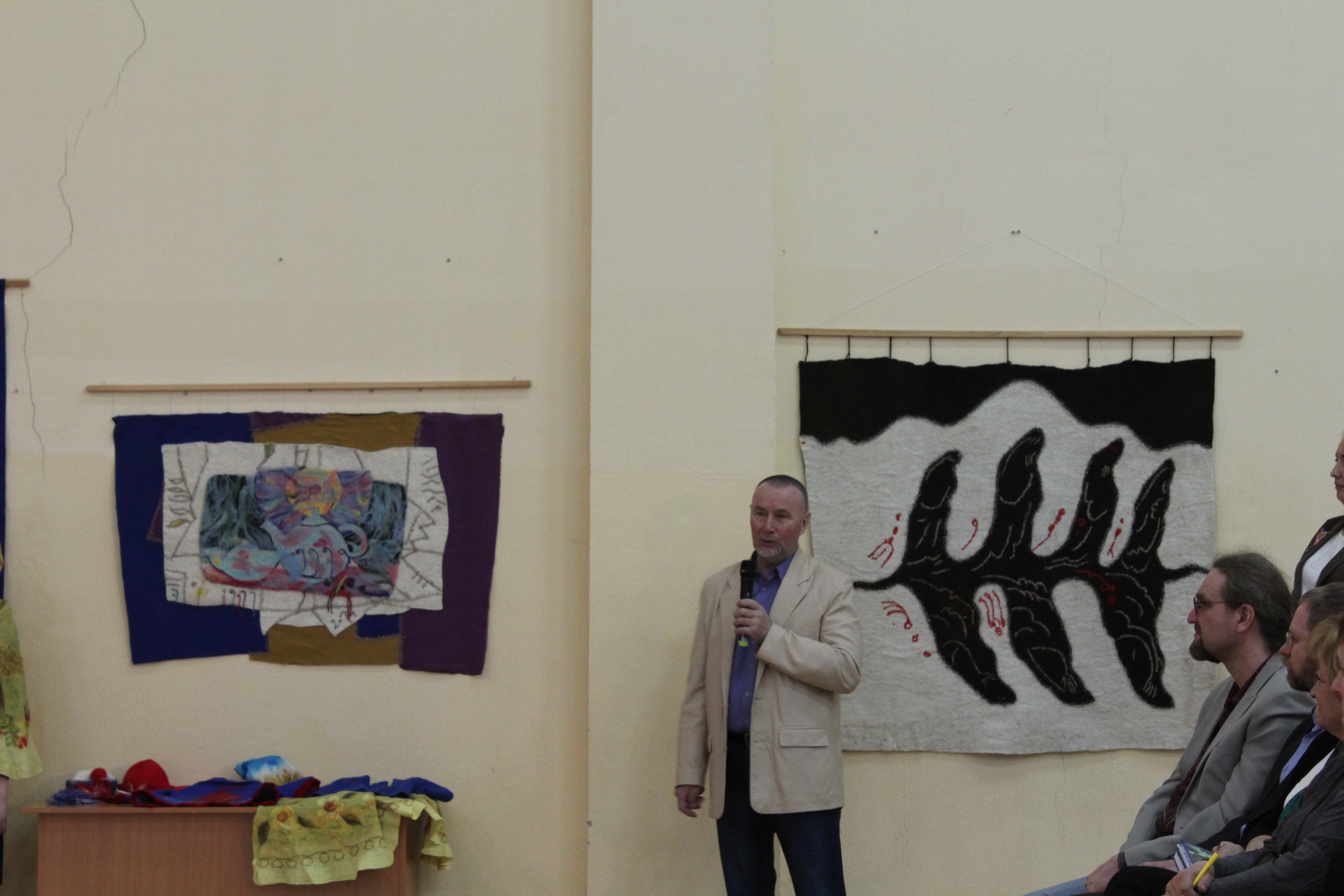 Группе московских гостей, руководителям столичных образовательных учреждений, руководителям системы образования Уфы были представлены войлочные полотна, выполненные в Центе художественного войлока. Работы получили высокую оценку зрителей. Декан Художественно-графического факультета Т.Х. Масалимов рассказал гостям о процессе восстановления традиционных технологий войлоковаляния, об особенностях развития этого уникального вида декоративно-прикладного искусства у нас в республике. Было отмечено, что начинания коллектива факультета получили широкую поддержку среди педагогического сообщества и художников региона.