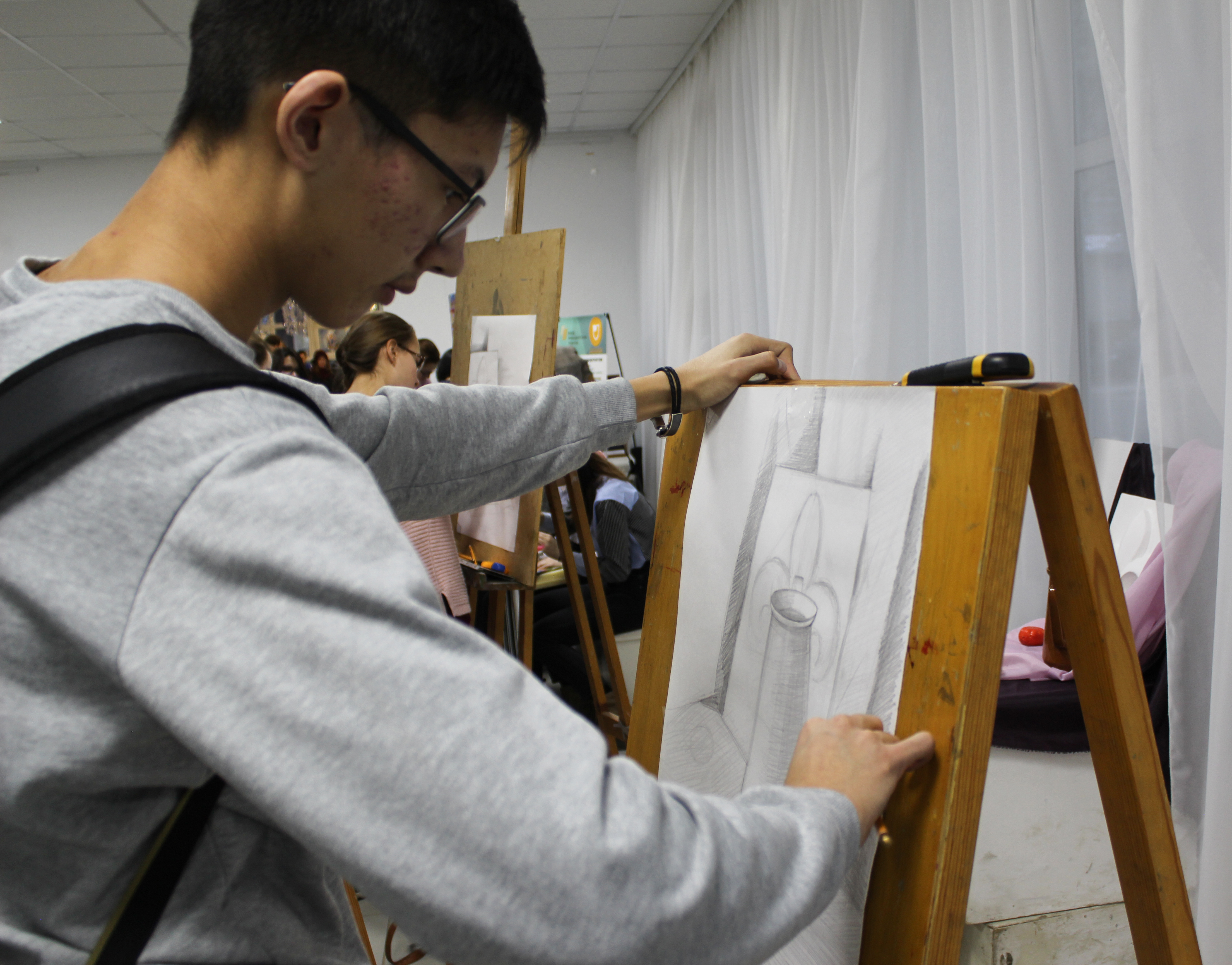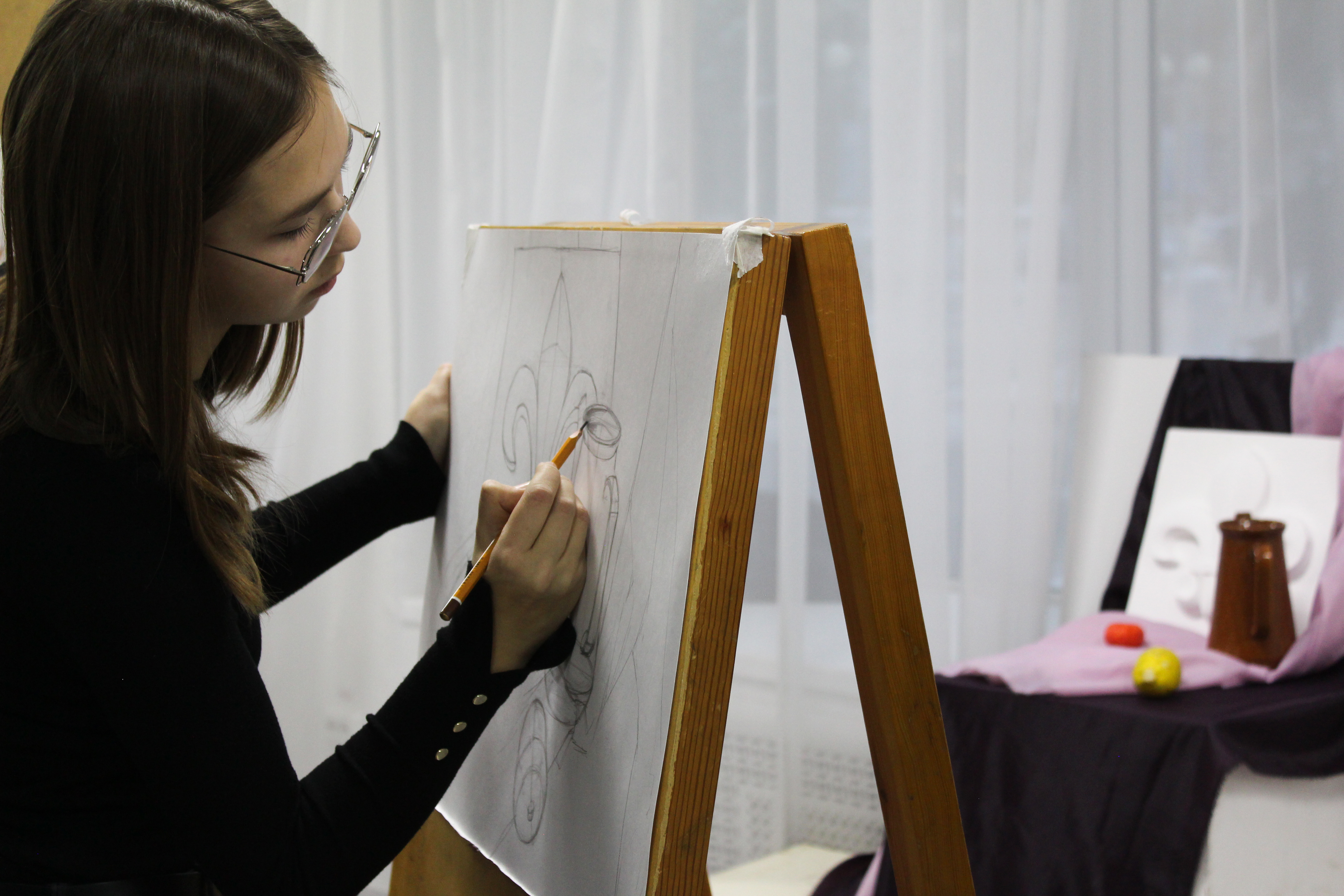 Художественно-графический факультет представил ряд мероприятий и мастер-классов, разработанных для будущих абитуриентов. Наиболее популярным стал мастер-класс по росписи стекла, все участники с удовольствием выбрали эскизы и приступили к росписи. Участники использовали специальный контур по стеклу и витражные краски на лаковой основе. По итогу у всех получилась яркая и необычная работа на стекле. Мастер-класс по войлоку также привлек внимание большого количества людей. На этом мастер-классе можно было научится основам войлоковаляния и попробовать создать небольшую работу в технике сухого валяния. Еще один мастер-класс - «Академический рисунок» вызвал ажиотаж среди учеников РХГИ им. К.А. Давлеткильдеева. Целью мастер-класса было наглядно показать абитуриентам выполнение одного из вступительных экзаменов на факультет. Была выставлена постановка для экзамена по Рисунку и студентка 1 курса, направления Дизайн - Сидорова Наталья поэтапно выполнила задание и показала отличное владение основами академического рисунка. В Белом выставочном зале проходила выставка Ивана Федорова «Художник, муза и поэт». Выставка посвящена писателям и поэтам, вниманию абитуриентов представлены великолепные портреты А.С. Пушкина, С.А. Есенина, А.А. Блока, В.В. Маяковского, И.А. Бродского и других. На дне открытых дверей присутствовали: декан, заместители декана по учебной и воспитательной работе, заведующие кафедрами и профессорско-преподавательский состав, которые активно отвечали на вопросы будущих абитуриентов. Большую помощь в проведении дня открытых дверей оказали студенты старших курсов и активисты Художественно-графического факультета.