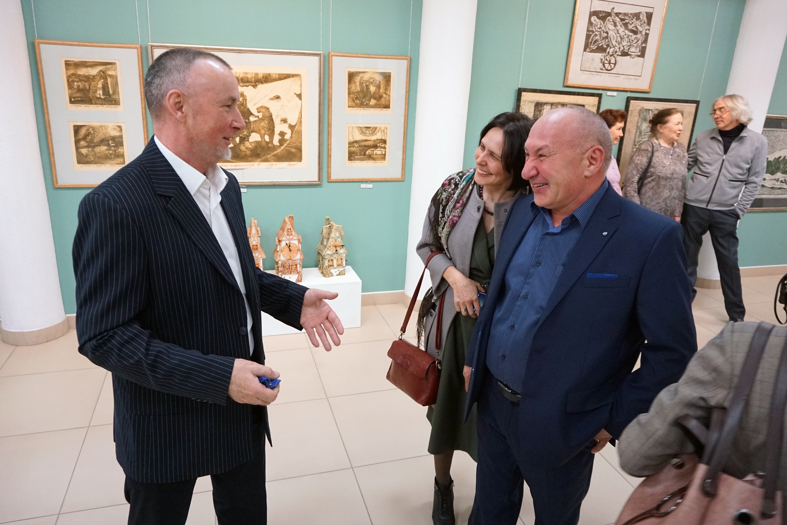 Было сказано много приятных и добрых слов от уважаемых гостей и выпускников худграфа. В состав экспонентов выставки вошли дипломные работы выпускников разных лет, в галерее представлена: живопись, графика, декоративно-прикладное искусство и дизайн. В рамках празднования юбилея художественно-графического факультета предусмотрена программа мастер-классов: