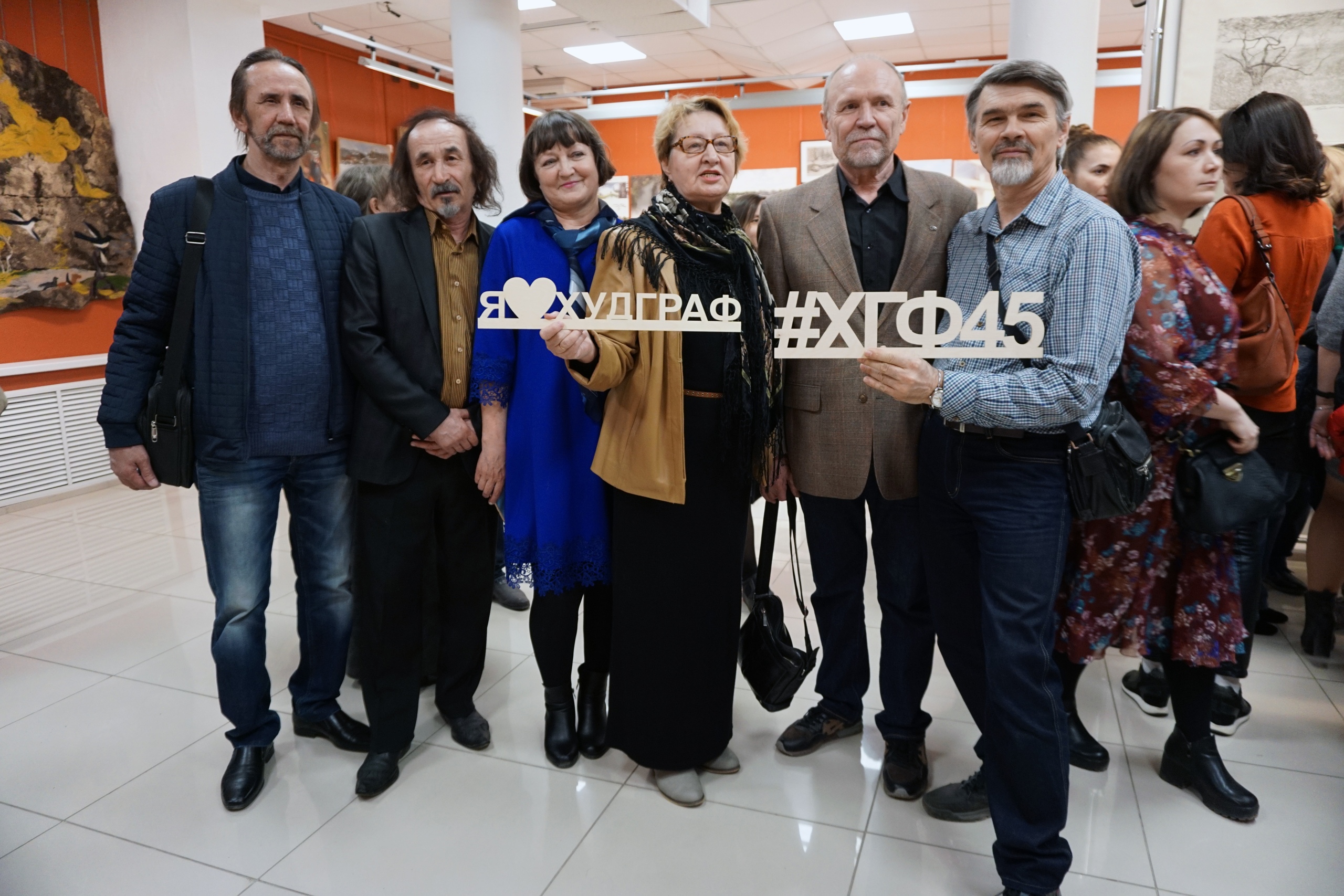 Празднование 45-ти летия художественно-графического факультета прошло в Уфимской художественной галерее. Торжественное открытие выставки посетило большое количество выпускников, преподавателей, доцентов, профессоров и гостей.