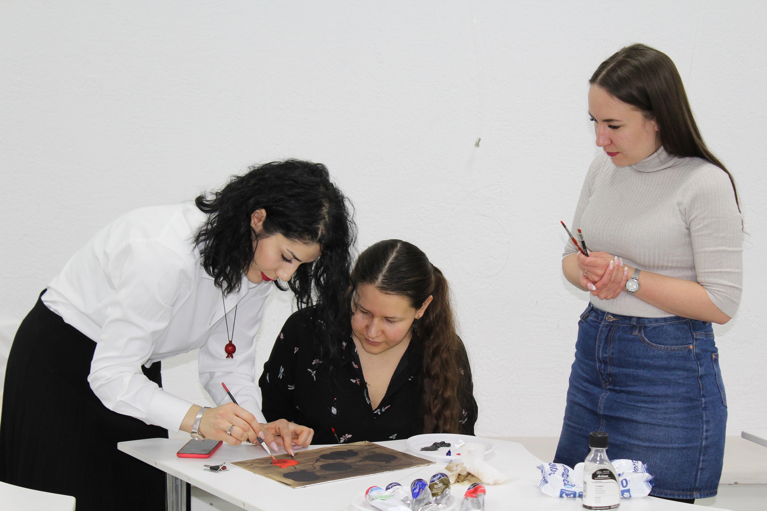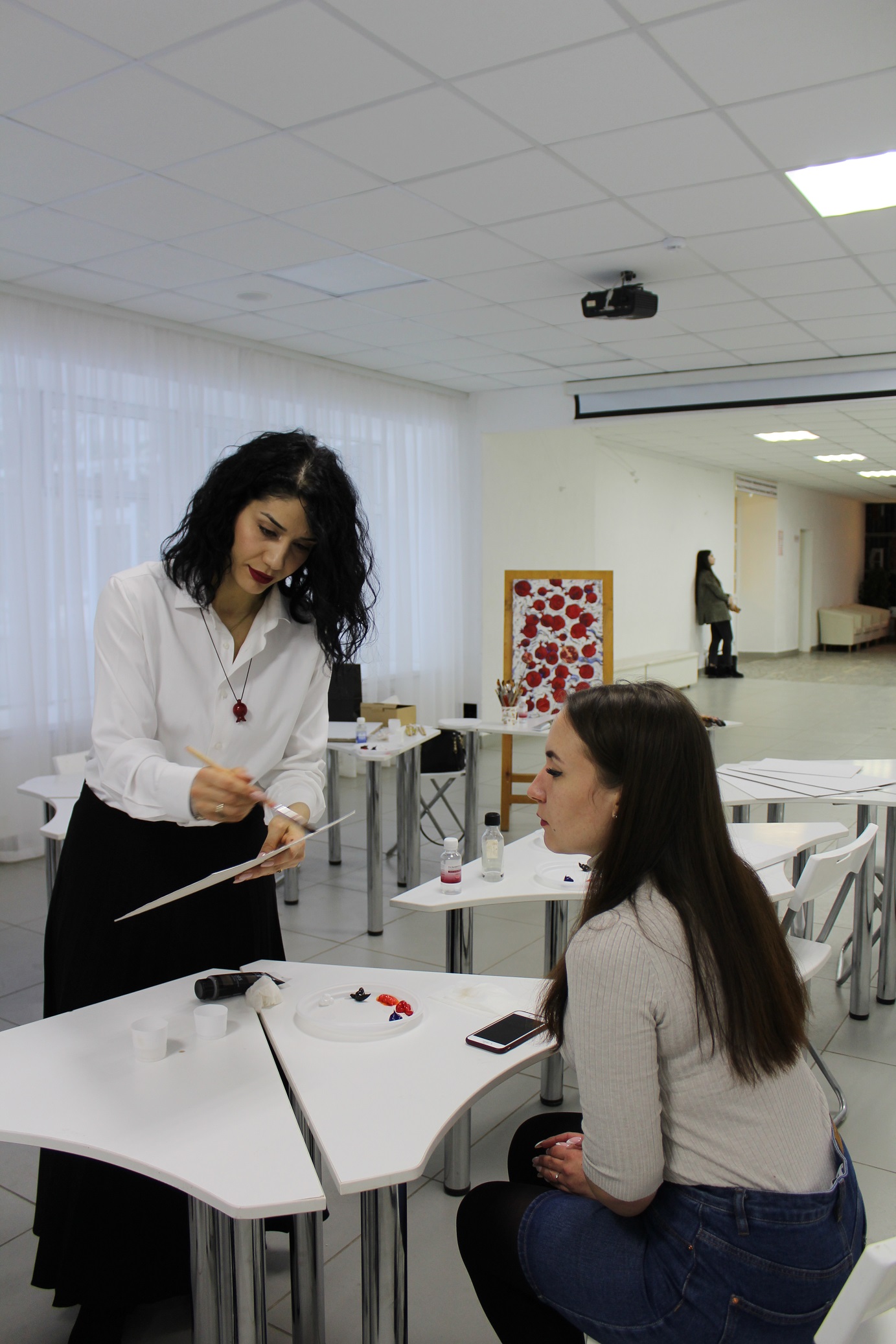 В рамках выставки-конкурса "Моя малая Родина: прошлое, настоящее, будущее" запланирована программа мероприятий для участников, победителей конкурса и студентов. Лиана Мкртчян с удовольствием согласилась поделиться опытом с молодыми художниками.