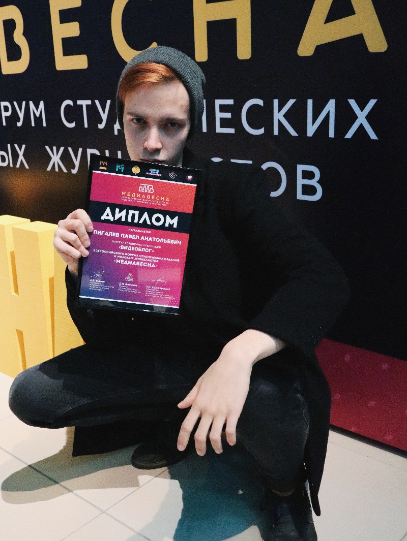 В номинации "Видеоблог" Павел был удостоен диплома первой степени. На форуме выступали спикеры, от которых ,по словам Павла, он узнал много нового. Он поделился своими впечатлениями: "По началу возникли проблемы с самой организацией, но после ошибки были устранены и конкурс стал лучше.  Среди спикеров был журналист Василий Корельский, ведущая 1 канала Дильбар Файзиева и сценарист Дмитрий Литвиненко. Я в первый раз делал ролик в жанре видеоблога. Затронул тему социального меньшинства (инвалиды и люди попавшие в трудную жизненную ситуацию), про то как современная российская культура избегает их упоминание и почему, если их упоминает, то в негативном ключе и поражают в голове зрителя лживые мифы (в качестве примеров приводились фильмы 'класс коррекции' и 'временные трудности'). 1 степень - это просто ВАУ!, успех, особенно когда ты в медиацентре обычно за кадром (Павел в Bsputeam видеограф и первый заместитель директора) и последний раз был в кадре 2 года назад. После просмотра спикеры указали на мои ошибки. Буду их устранять. Буду лучшим!"