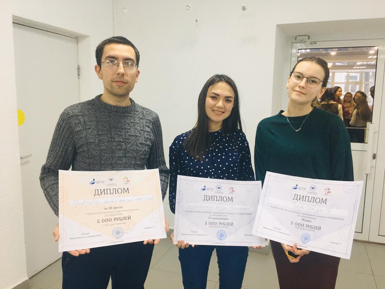 В Акселераторе студенческих проектов «СОЗИДАТЕЛИ» от кафедры прикладной информатики участвовали четыре проекта в секции "IT инновации", а также поданы проекты в секции "Патриотическое воспитание",  "Научно-техническое творчество", "Предпринимательство".  От кафедры ИСИТ были поданы два проекта в секцию "IT инновации".