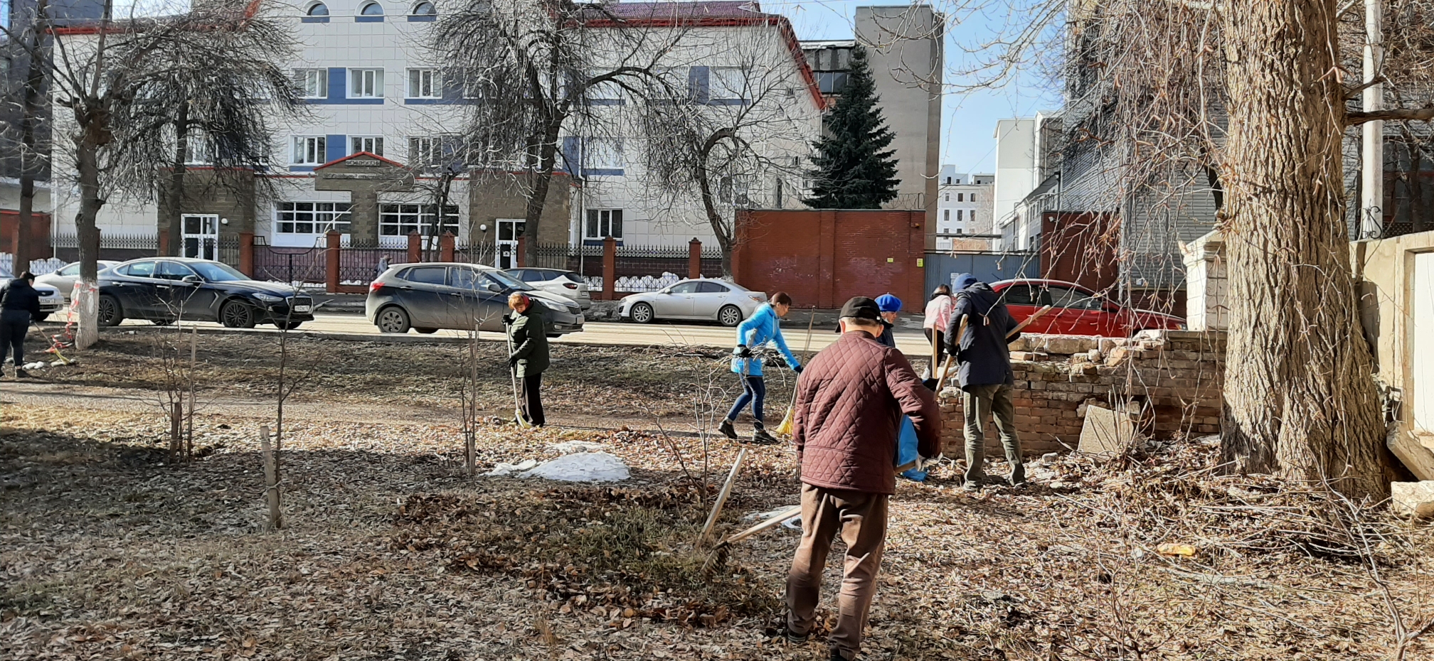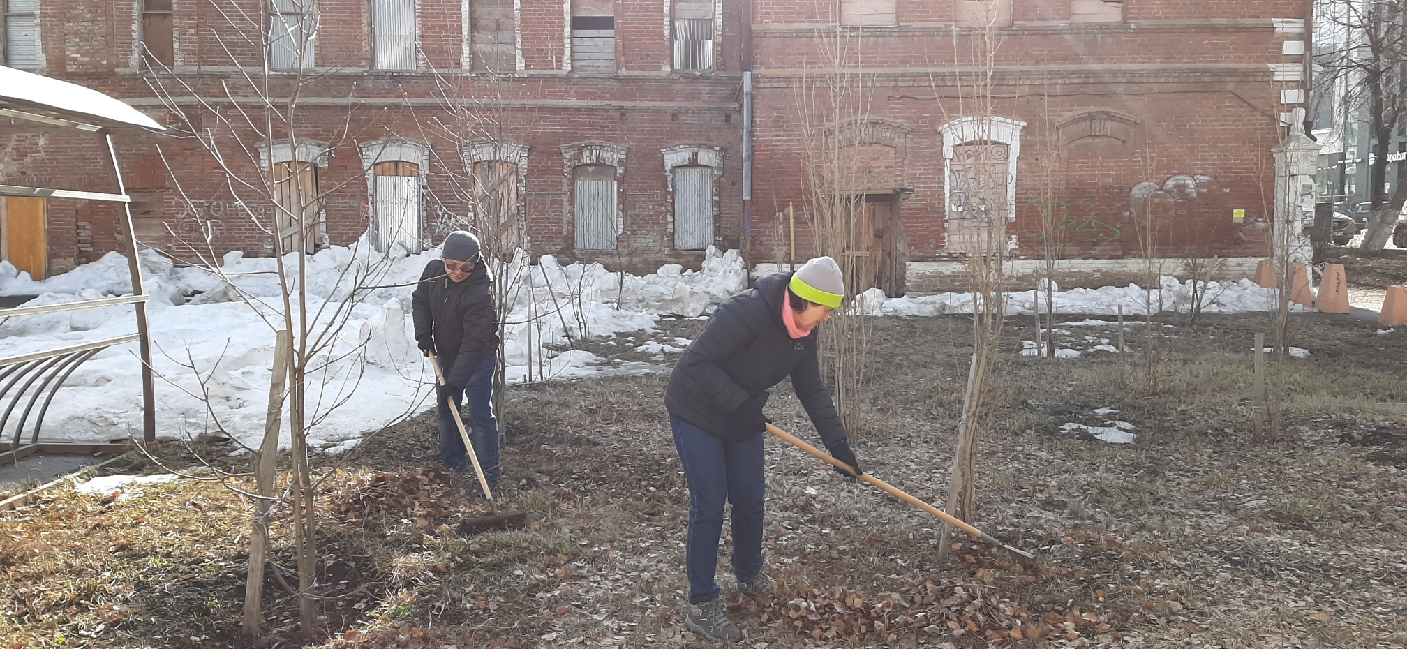 Совместными усилиями был раскидан снег во дворе и убрана аллея, которую сажали сами сотрудники 5 лет назад.