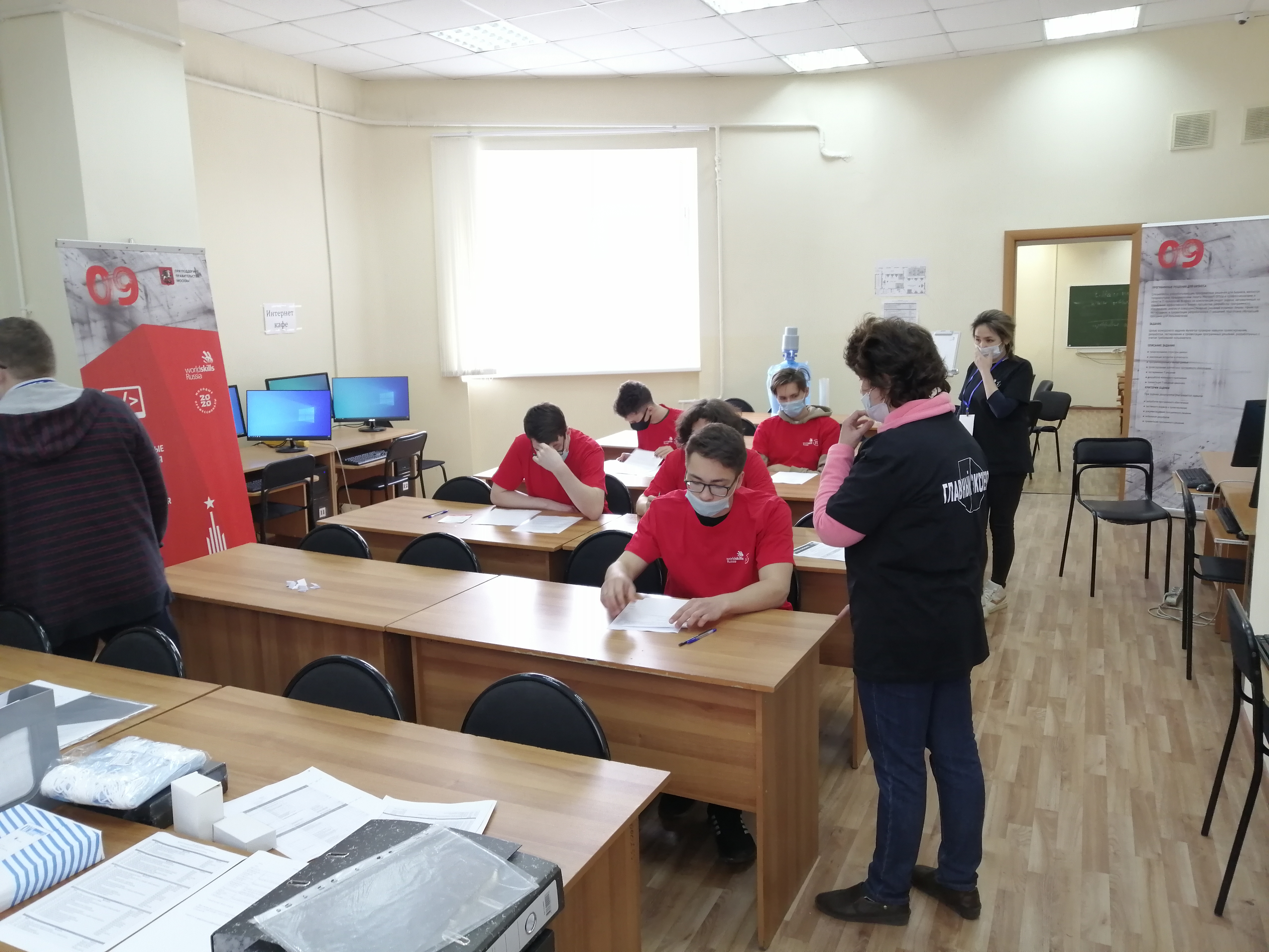 Понедельник был днем экспертов (регистрация экспертов на площадке,  знакомство, инструктаж по технике безопасности и охране труда, инструктаж по работе на чемпионате, распределение ролей и полномочий экспертов)  и состоялось торжественное открытие Чемпионата. Во вторник продолжили работу эксперты (ознакомление с конкурсным заданием и критериями оценки, формирование групп экспертов по оценке, блокировка схемы оценки в CIS, подписание схемы оценки), а участники прошли регистрацию на площадке, инструктаж по технике безопасности и охране труда, жеребьевку, проверили оборудование  и сетевые ресурсы. Завтра начинаются дни соревнований. Желаем участникам удачи!