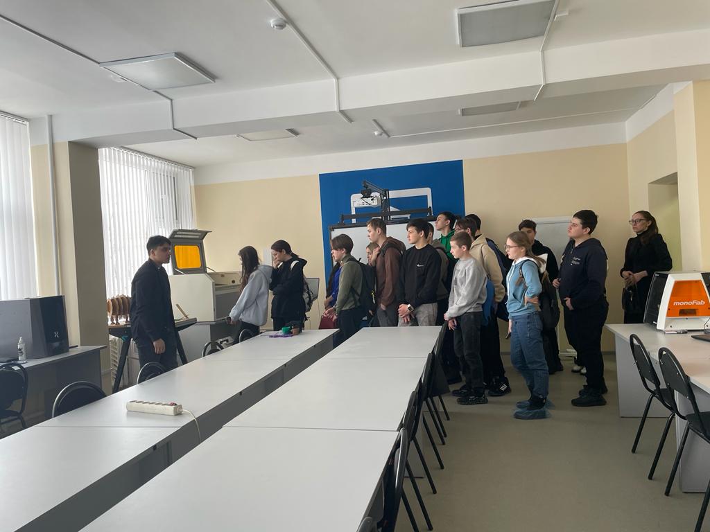 Гости ознакомились с оснащением лаборатории дополненной реальности, научно-исследовательским и технологическим оборудованием для изучения органических полупроводниковых материалов в широком диапазоне температур 6К-300К, а также учебными лабораториями инженерной и компьютерной графики, 3D-проектирования и печати, атомно-силовой микроскопии, рассмотрели станки с УПУ, робототехнику, беспилотные летательные аппараты и многое другое.