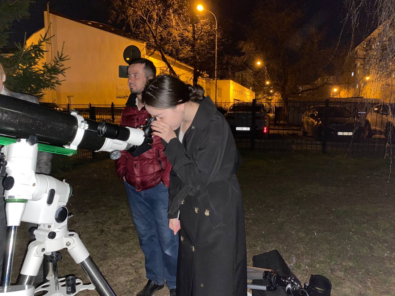 НИЛ "Международный центр астрофизики им. Я.Б. Зельдовича" 6 апреля организовала наблюдения для всех желающих в студгородке университета, под руководством доцента кафедры физики и нанотехнологий Рамиса Хамитовича Каримова. Студенты и магистранты получили возможность наблюдать поверхность Луны и отработать навыки юстировки и настройки телескопа, а также провести отдельные измерения в рамках в рамках научно-исследовательских работ.