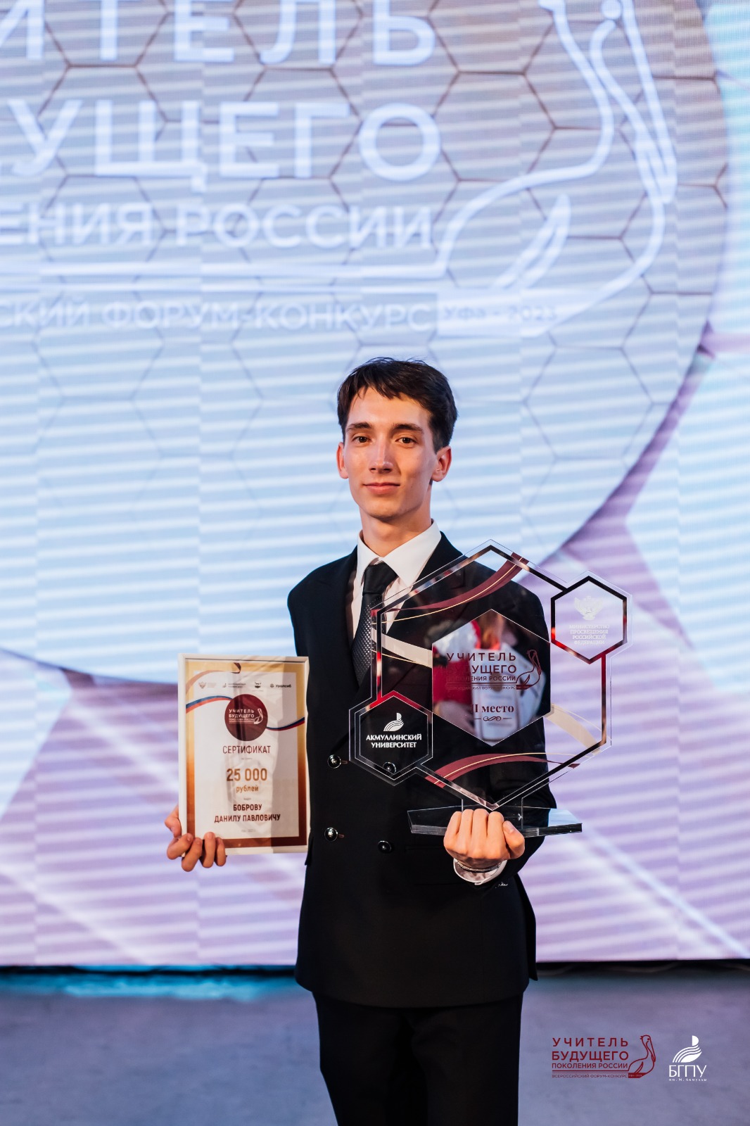 - Данил, во-первых, я поздравляю с окончанием университета с красным дипломом! Во-вторых, совсем недавно вы стали одним из победителей всероссийского форума-конкурса «Учитель будущего поколения России». Расскажите о пути к победе: как вы решили участвовать в конкурсе, кто вам помогал, какие эмоции испытали, став лауреатом конкурса?