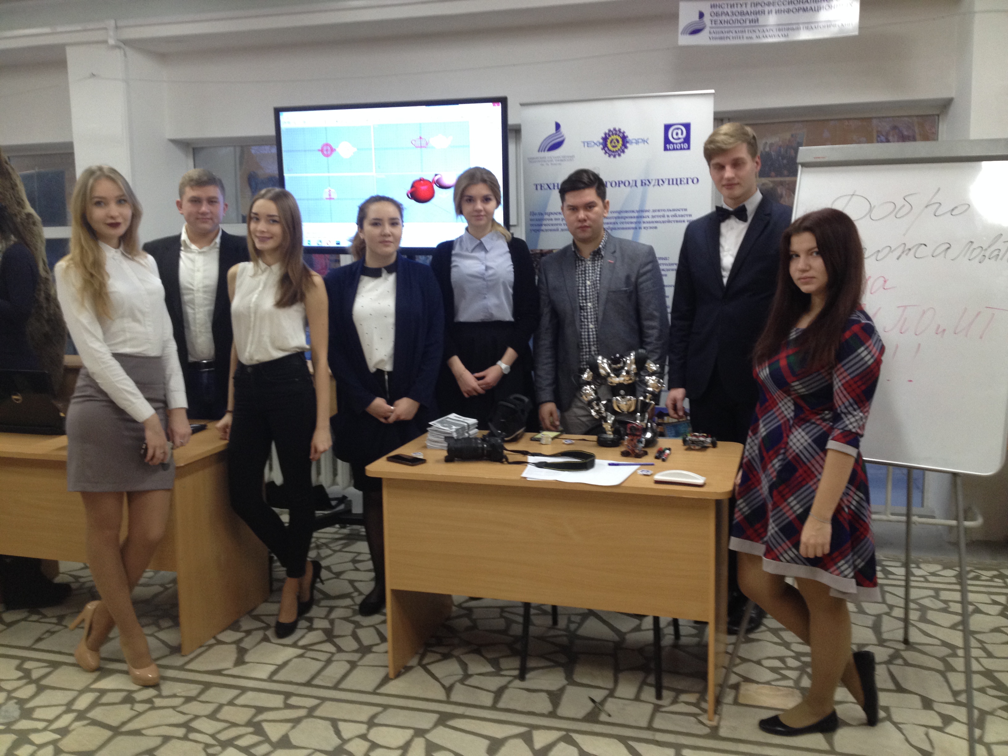 В рамках Дня открытых дверей, проходившего в БПГУ им.М.Акмуллы 10 декабря 2016 года, Институтом профессионального образования и информационных технологий была представлена вниманию посетителей выставка, содержащая экспонаты, созданные руками студентов под руководством профессорско-преподавательского состава института. Среди них были роботы, собранные и управляемые студентами. Также студентами старших курсов проводился мини-тренинг по развитию познавательного интереса в области информатики.  Желающие попробовать себя в создании объектов в программе 3D-MAX работали на ноутбуках и видели результаты своего труда здесь же на большом экране. Особое  внимание абитуриентов привлёк стенд «Виртуальная реальность», созданный в лаборатории ИПОиИТ под руководством преподавателя кафедры Информационных систем и технологий Исхакова Алмаза Раилевича. За время работы выставки через стенд прошло более 300 абитуриентов, которые высказали свои восторженные впечатления от ощущений, испытанных в ходе «виртуального путешествия».ИПОиИТ, как инженерный факультет нашего университета, ежегодно принимает на 1 курс выпускников школ и учреждений СПО, интересующихся информационными технологиями и обладающих способностями к программированию и техническому творчеству.
