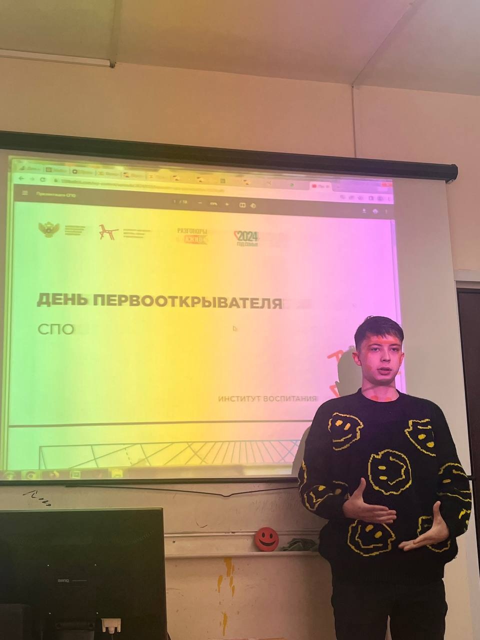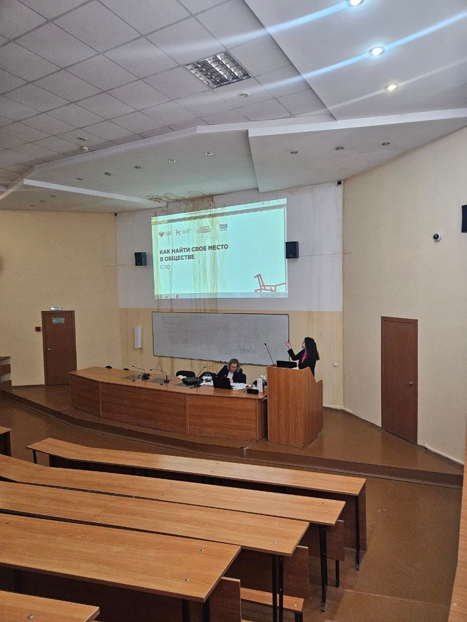 4 марта была проведена рубрика "Разговоры о важном". Ведущей данного мероприятия стала студентка ПОФ_ИНФ-11-23 Гарейшена Светлана. Беседа была проведена со студентами групп ЭИН_ПЭИС_11-23, ЭИН_НМ-11-23, ИСИТ-11-23, ПМФ_МФ-11-23 и ПМФ_КТАД-11-23. Беседа была посвящена поиску своего места в обществе. А также ведущая поговорила со студентами о развитие личностных качеств через познавательные телесериалы. Тезисом мероприятия стало высказывание Президента В.В.Путина "Вообще, найти себя в жизни это самое главное. Это первый шаг к успеху. Если есть увлечение будет обязательно и победа".