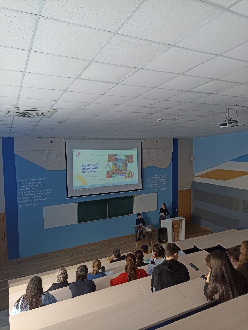 26 февраля была проведена рубрика "Разговоры о важном". Ведущей данного мероприятия стала студентка ПОМ_ИНФ-11-23 Исмагилова Ангелина. Беседа была проведена со студентами групп ПОФ_ИНФ-11-23 и ПОМ_ИНФ-11-23. Беседа была посвящена Всемирному фестивалю молодёжи. Ведущая рассказала о возможностях нашей страны, а в частности о ВФМ 2024, который пройдёт на федеральной территории "Сириус".