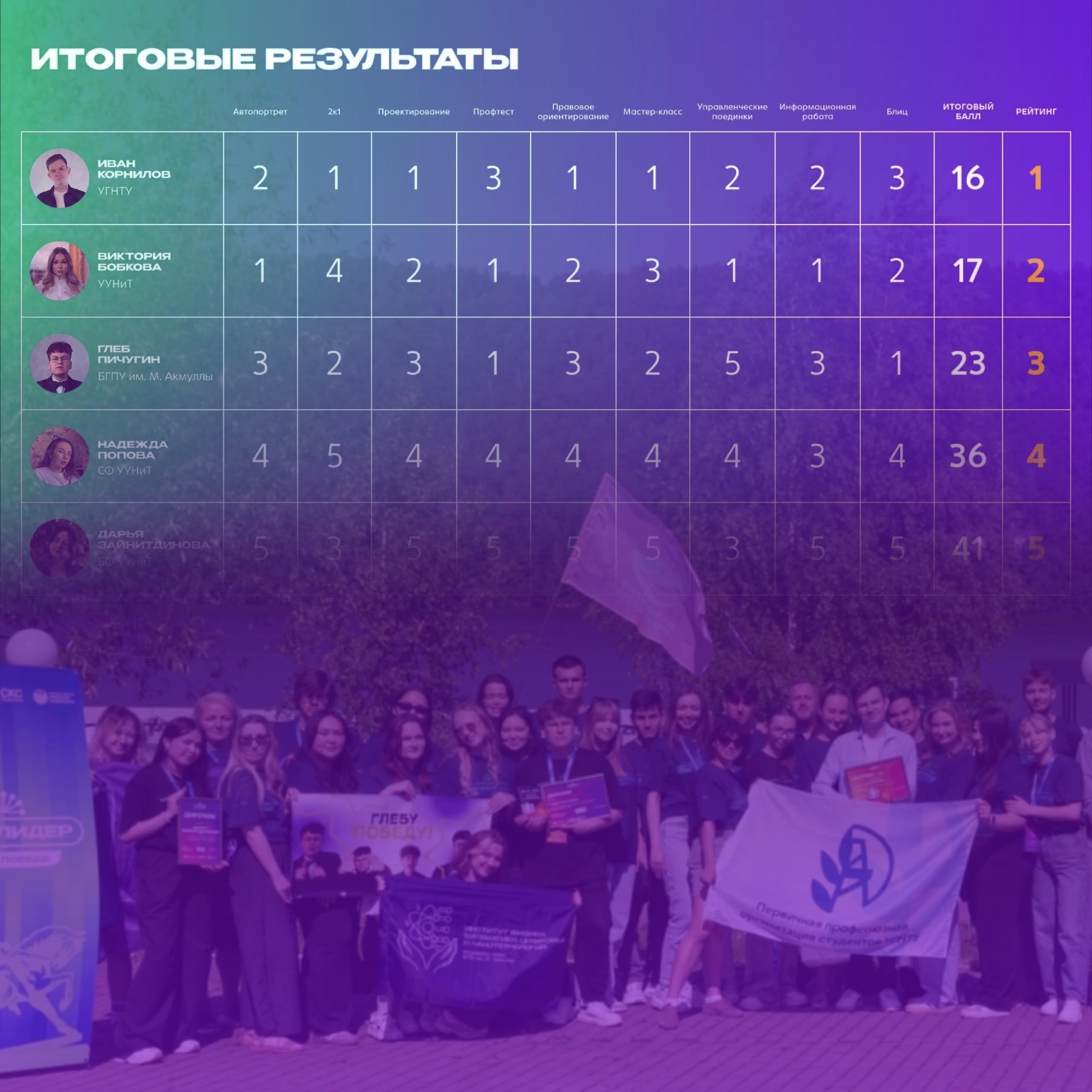 Глеб — яркий пример активного, инициативного и целеустремлённого студента. Его лидерские качества и трудолюбие вдохновляют всех вокруг. Этот успех — результат упорной работы!