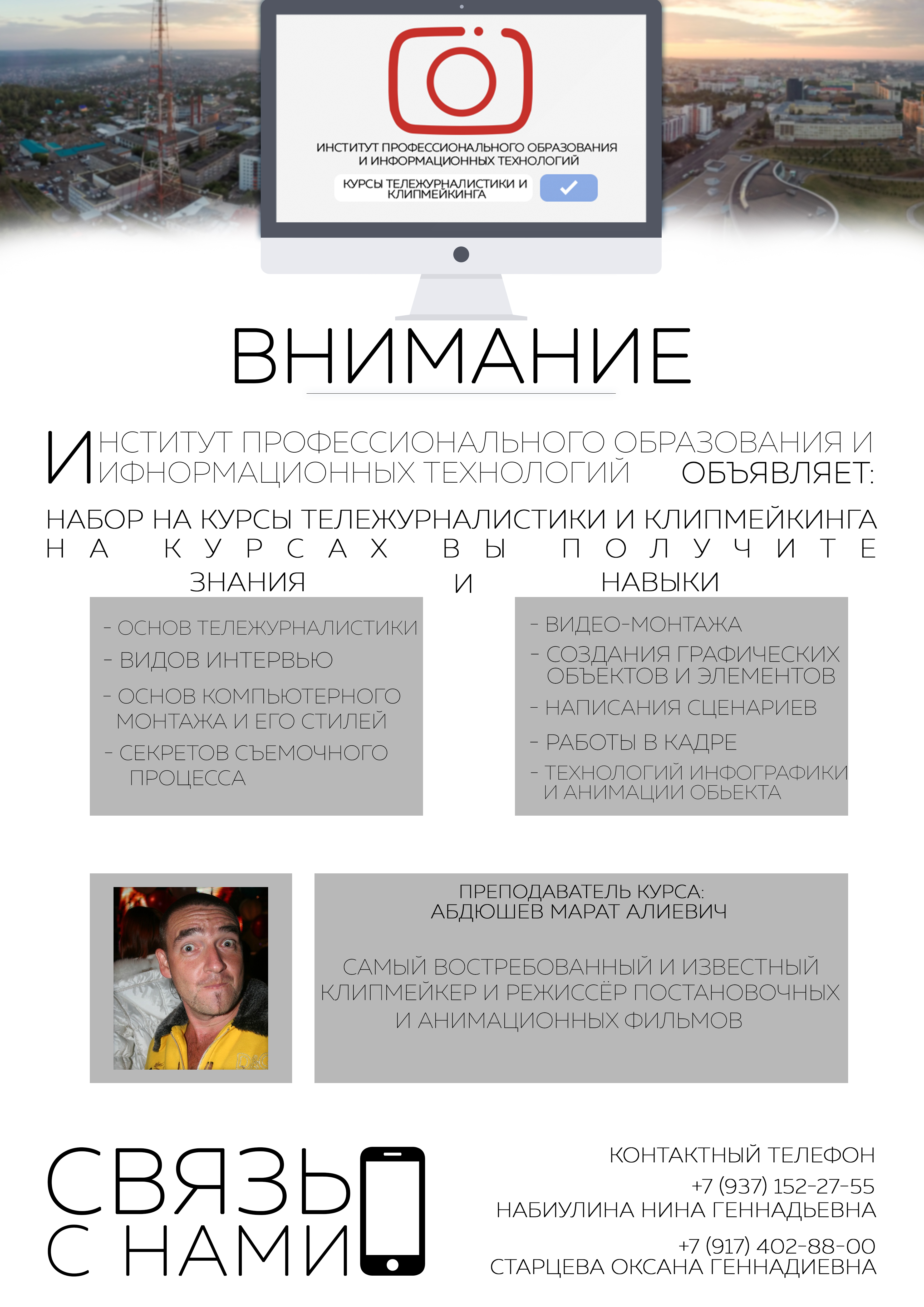 Лаборатория IT-технологий и WEB-дизайна ИПОиИТ приглашает студентов БГПУ им. М. Акмуллы и всех желающих на  КУРСЫ «ТЕЛЕЖУРНАЛИСТИКА И КЛИПМЕЙКИНГ».