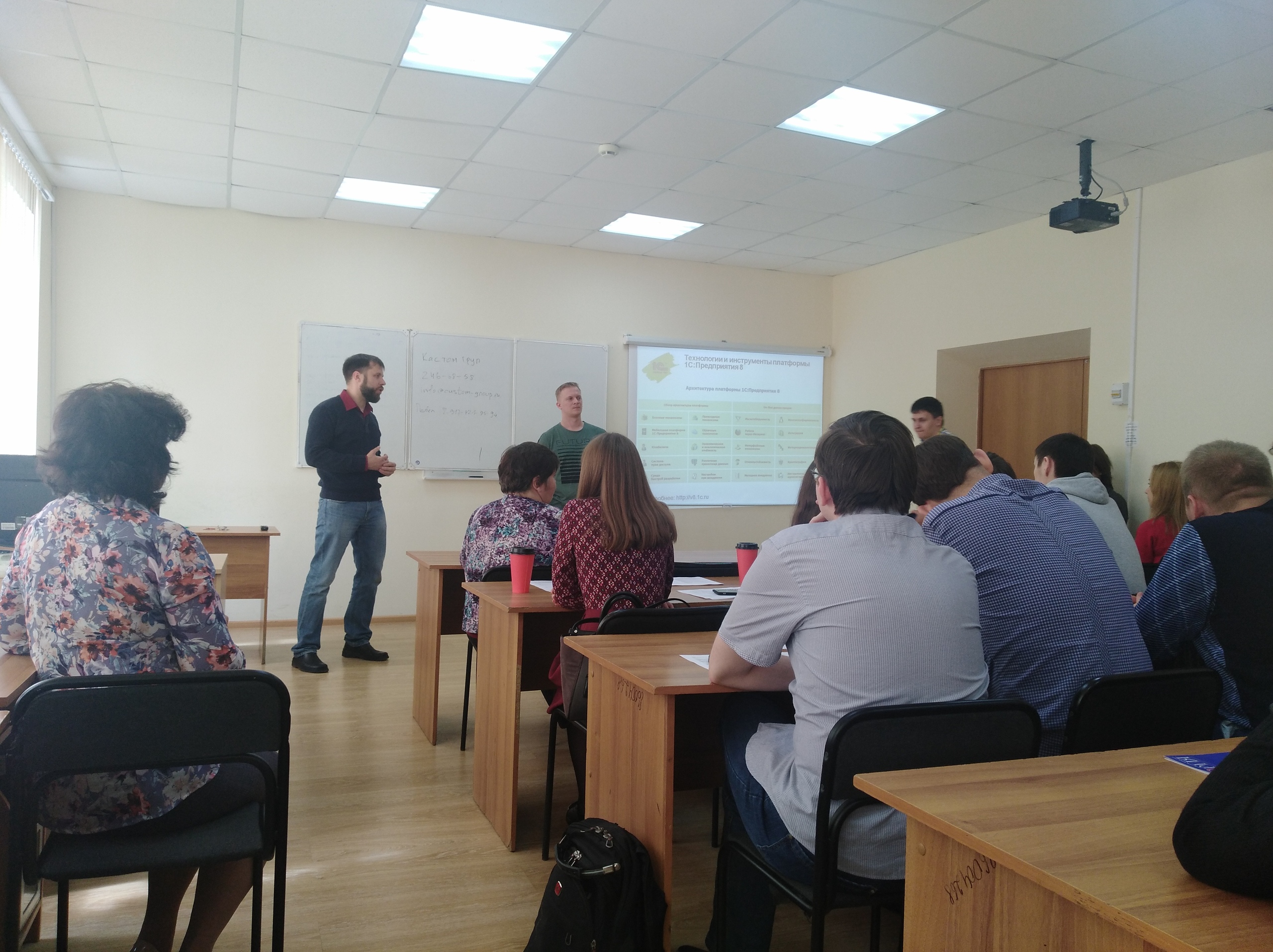 Директор компании "Кастом Груп" Павел Семенов рассказал о своей компании, особенностях построения карьеры в ней, системе наставничества. Руководитель отдела разработки этой компании Антон Светлаков провел мастер-класс по технологической платформе "1С: Предприятие". Вместе представители компании "Кастом Груп" ответили на вопросы студентов о возможностях и особенностях данной платформы,  обсудили отношение к новичкам.
