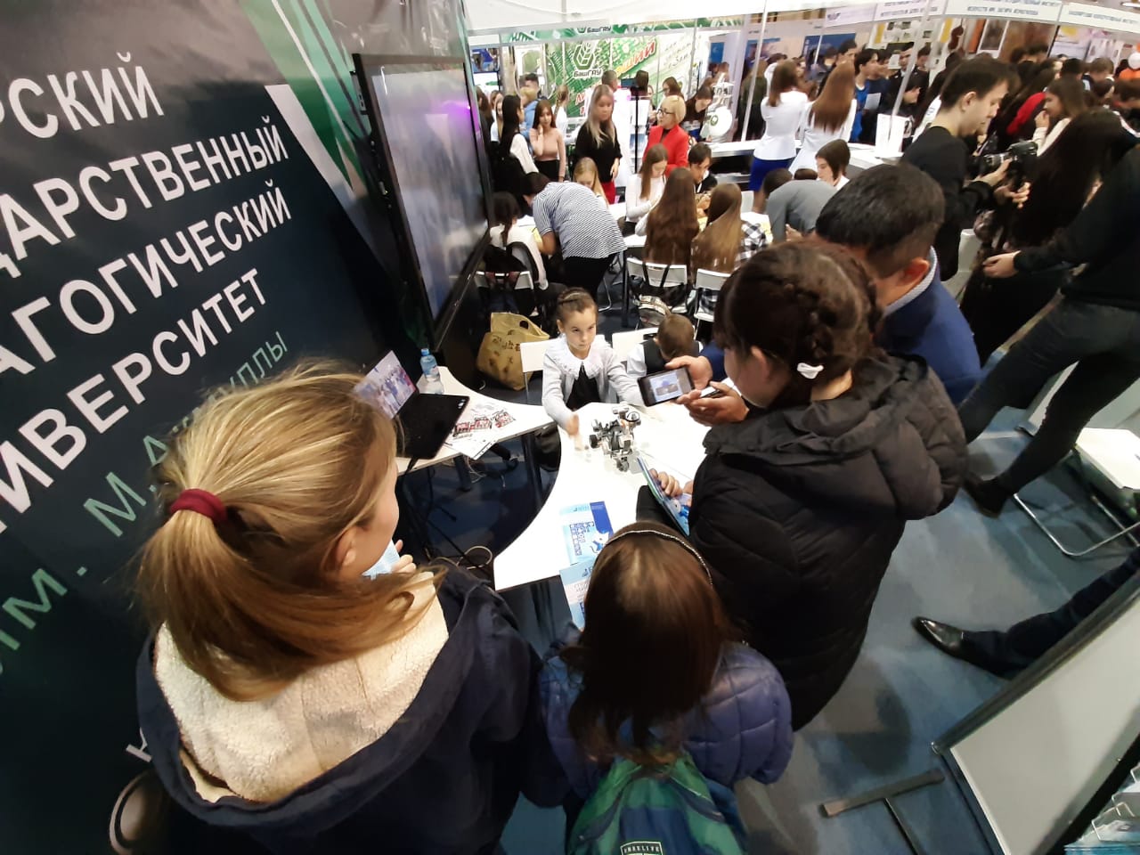В рамках секции Исхаков А.Р. провел мастер-класс по робототехнике, который не остался без внимания посетителей и участников салона. Хакимова Е.А. подготовила медиаконтент по направлениям деятельности кафедры. Старцева О.Г. общалась с посетителями, среди которых были школьники, учащиеся СПО и представители других организаций.