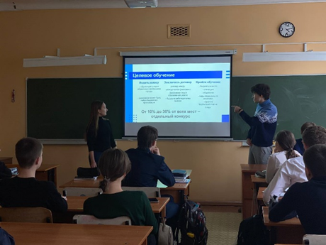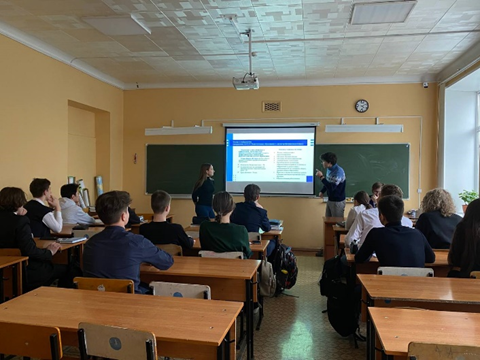 Студенты ИФМЦН группы ПОМ_ИНФ 41-19 Шлыков Валерий  и Сахипзянова Лилия провели профориентационное мероприятие в физико – математическом лицее № 93 г. Уфы. Ребята выступили с докладом и презентацией перед учениками 10 класса. Валерий и Лилия рассказали о различных направлениях нашего университета, о всех значимых проектах ИФМЦН: