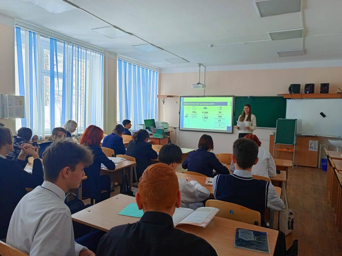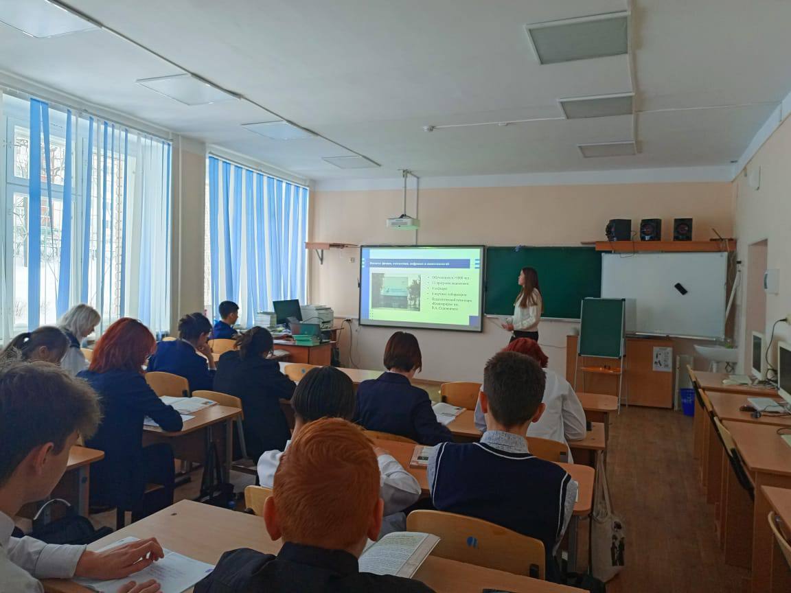 Студентка IV курса Ильясова Алина Института физики, математики, цифровых и нанотехнологий, направления подготовки Педагогическое образование (с двумя профилями подготовки), профиль математики и информатики, провела профориентационное мероприятие для обущающихся 9 классов в СОШ с.Алкино-2.Мероприятие прошло в целях знакомства школьников со специальностями и профессиями, которые можно получить при поступлении в колледж или университет БГПУ им.Акмуллы. Так же мероприятие было направлено на расширение знаний об истории открытия Акмуллинского университета, о различных факультетах и корпусах, о новых технологиях обучения, в новых современных лабораториях в которых проводят занятия.В процессе проведения такого мероприятий школьники узнали много новой информации о нашем университете, особенно об особенностях поступления, о активной и творческой студенческой жизни.
