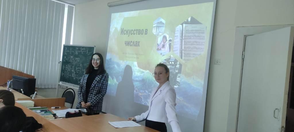 На базе ИФМЦН проходят мероприятия посвященных Дню математика. 30 ноября студенты второго куса ПОМ-ИНФ 21-23 Чувлина А.Д., Акбашева К.Р. провели просветительскую лекцию в рамках уроках о главном о связи математики и искусства "Искуство в числах". В уроке принимали участие студенты 1 и 2 курса ИФМЦН. Ответственный за мероприятие, член оргкомитета Юрьева А.М.