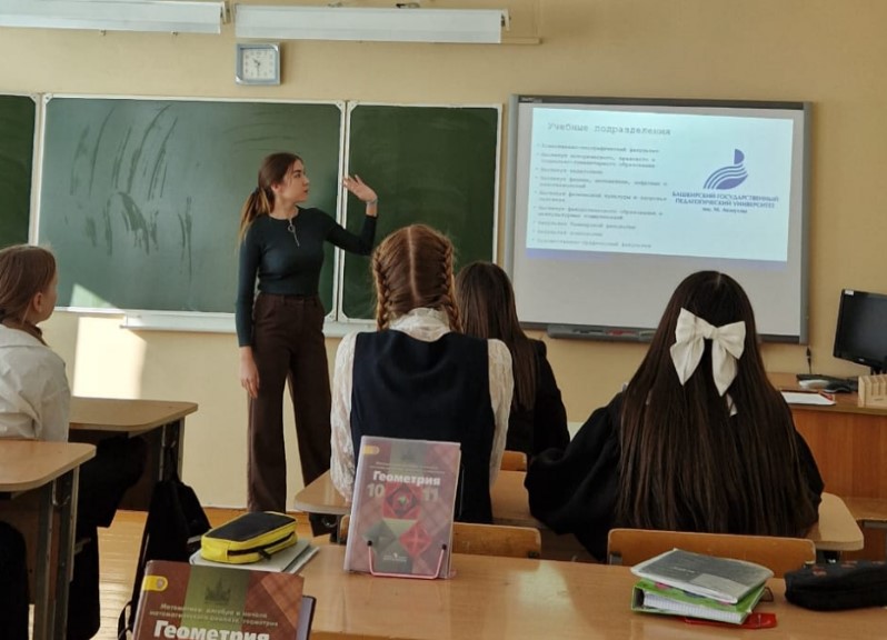 В МАОУ СОШ №1 р.п. Чишмы студентка 4 курса БГПУ им. М. Акмуллы Ибрагимова Яна провела в 11 классе профориентационное мероприятие под названием «Поступай в один из ведущих педагогических