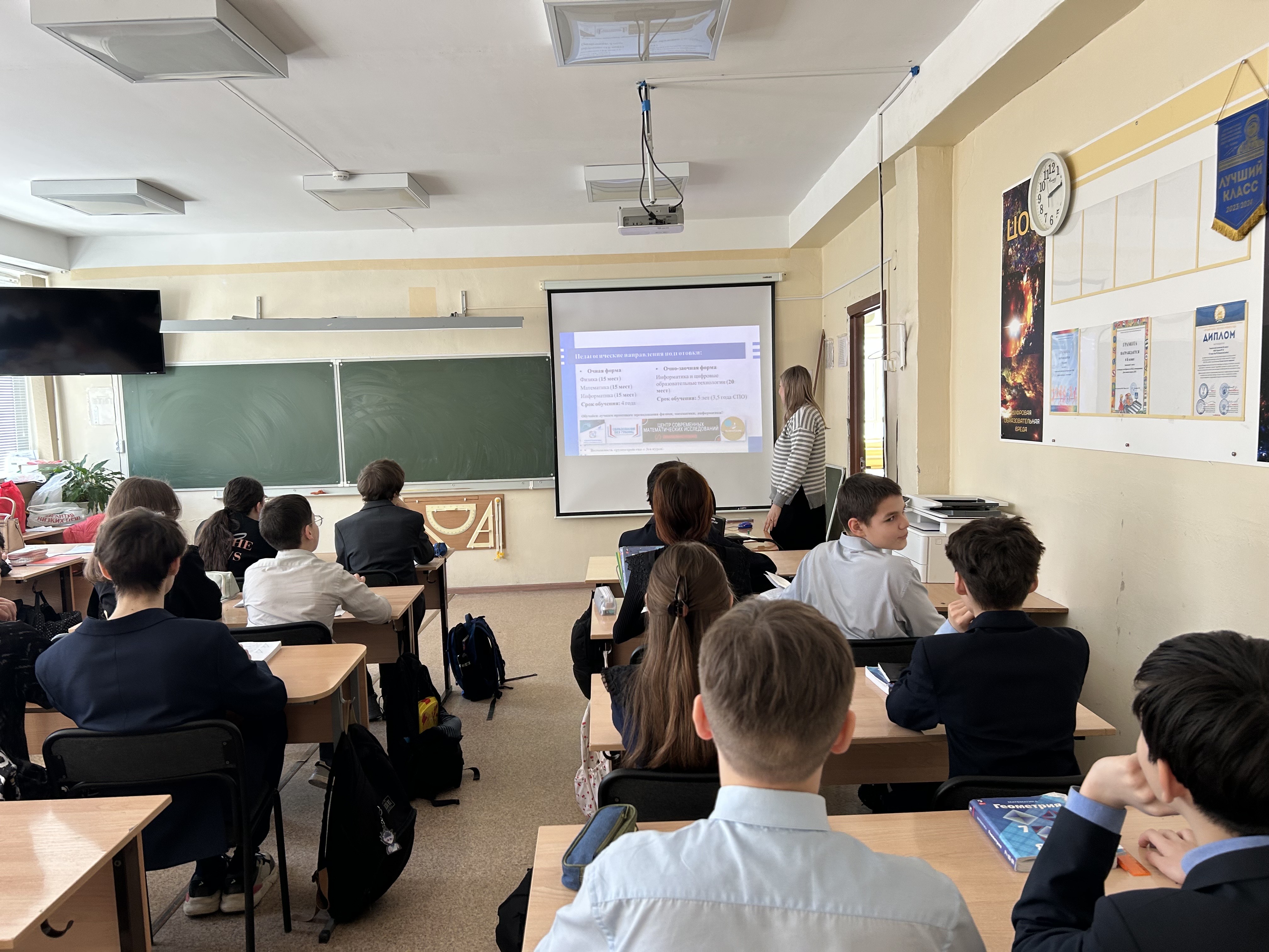 С девятиклассниками была проведена интерактивная беседа, а также в ходе разговора были выполнены интересные задания и возможность детей задать все интересующие вопросы о выборе профессии и дальнейшего образования.