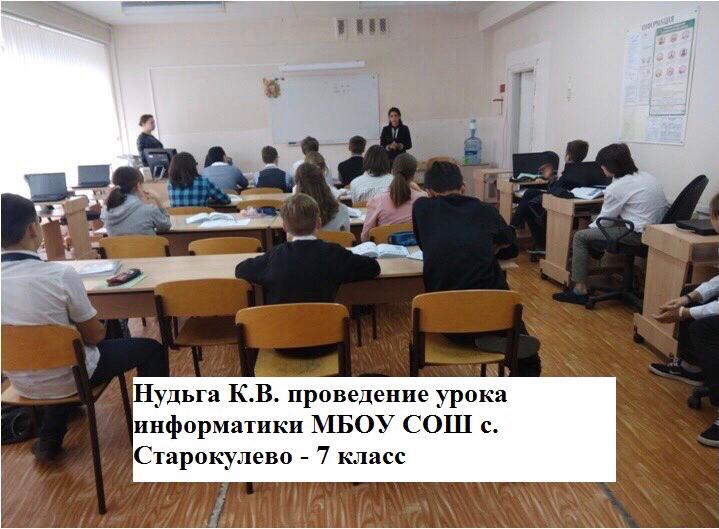 В период с 07.10.2019 г. по 02.11.2019 г. проходила  педагогическая практика студентов 3-го курса заочной формы обучения. Студенты самостоятельно разрабатывали поурочные планы и проводили не менее 2 уроков по информатике различных типов в соответствии с ФГОС.  Проводился самоанализ зачетных уроков по информатике с целью установления причинно-следственных связей между структурными компонентами уроков (связь между целью, содержанием, формами, методами, условиями, в которых протекали уроки, и их результатами, а также теми педагогическими явлениями, которые привели к этим результатам).
