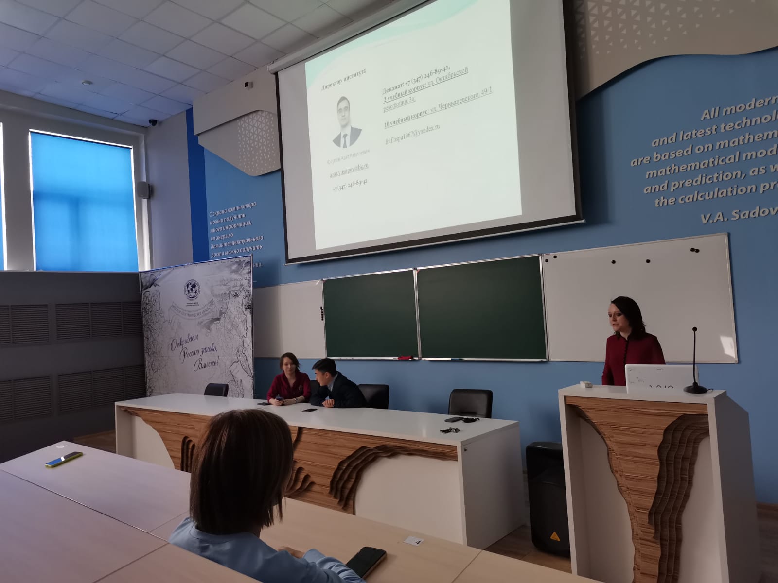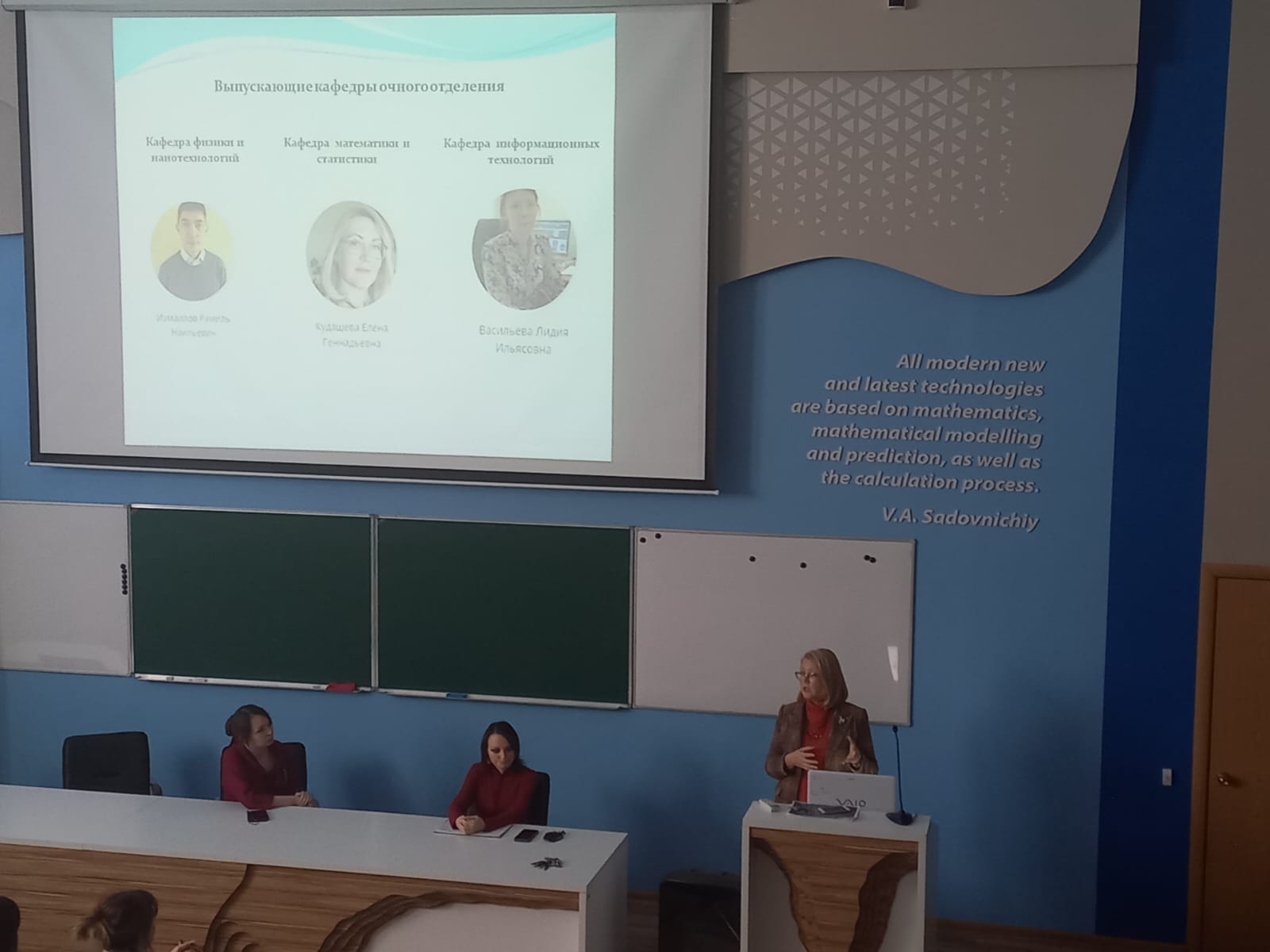 26 ноября 2022 г. в рамках общеуниверситетского  собрания для родителей первокурсников состоялось собрание родителей студентов Института физики, математики, цифровых и нанотехнологий. Родителей приветствовали представители директората института в лице Гесс Лиры Зиевны, заместителя директора по научной работе, заведующий кафедрой математики и статистики Елена Геннадьевна Кудашева и заведующий кафедрой физики и нанотехнологий Рамиль Наильевич Измаилов.