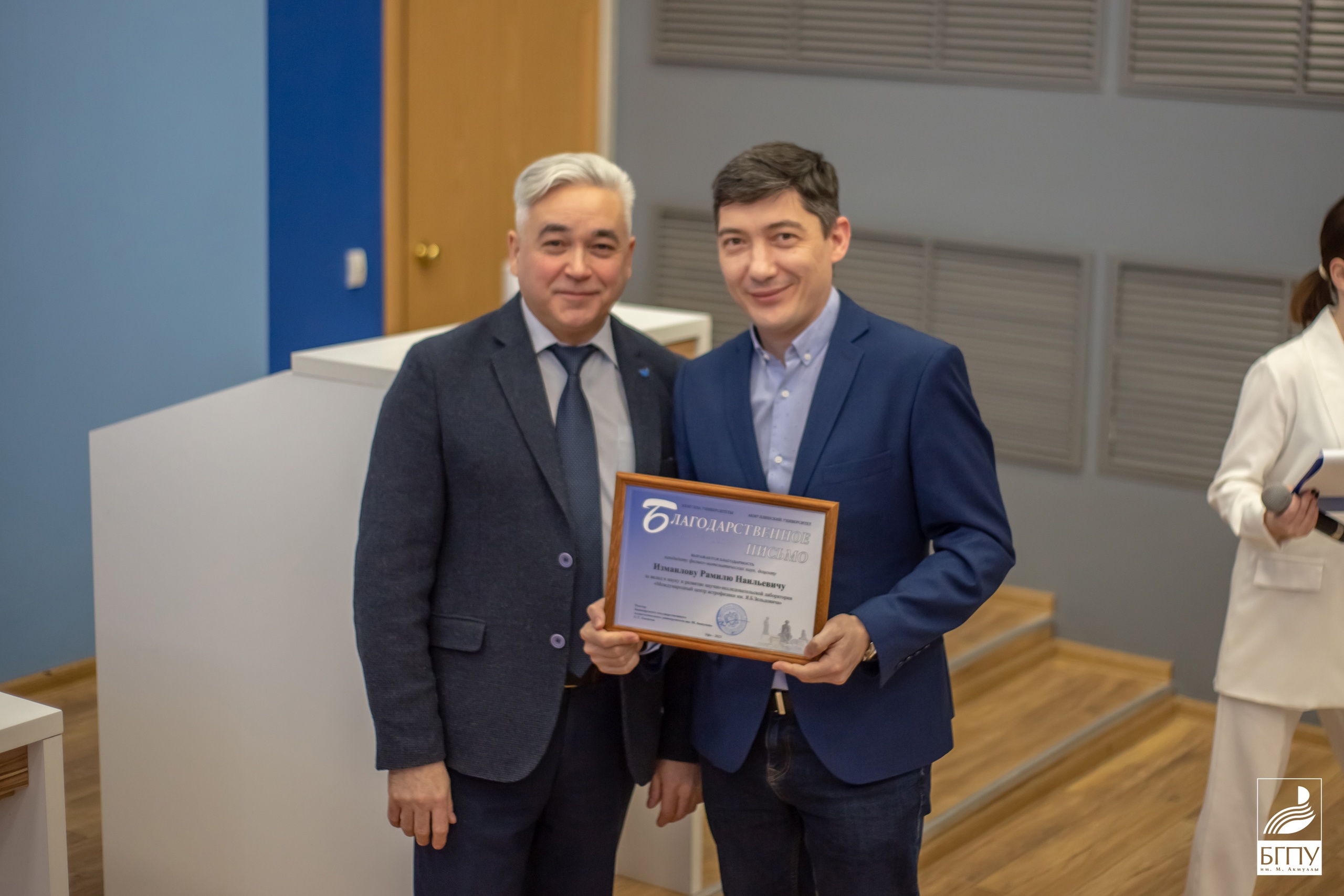 Также ректор Института развития образования Республики Башкортостан Азат Вазирович Янгиров вручил сертификаты участника стратегической сессии «Лучшие российские и зарубежные практики развития образовательных организаций высшего образования  директору Института физики, математики, цифровых и нанотехнологий Азату Юусупову  профессору, руководителю научно-исследовательской лаборатории «Наноэлектроника перспективных материалов» Алексею Лачинову.