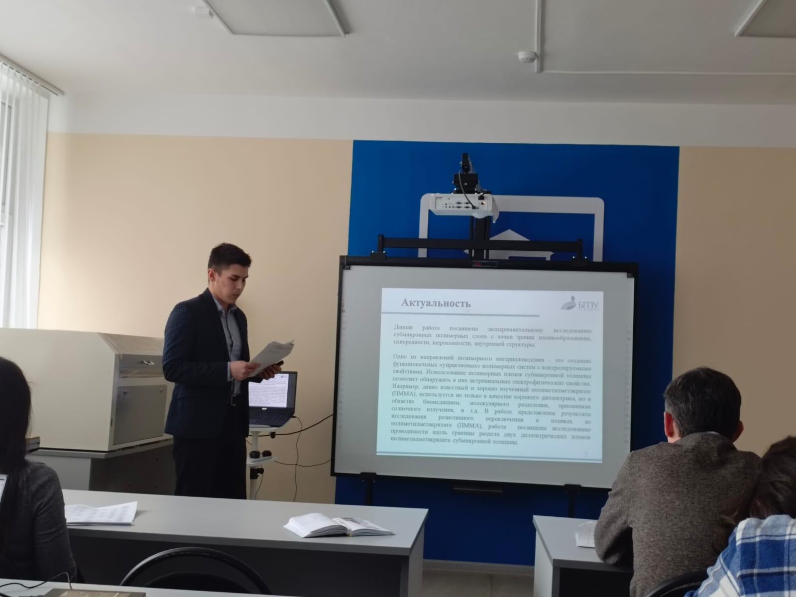 Студенты представили на обсуждение результаты литературного обзора по темам исследования и предварительные результаты расчетов и экспериментов, выполняемых в рамках выпускных работ.