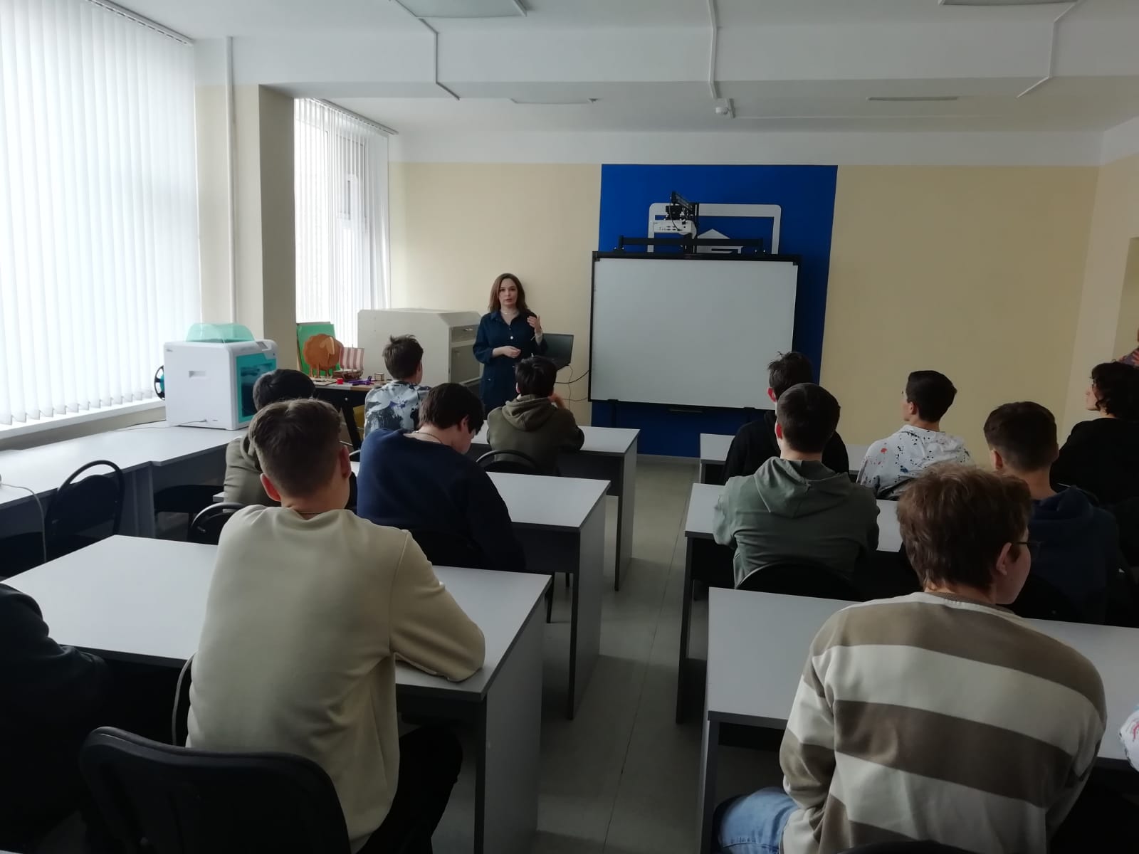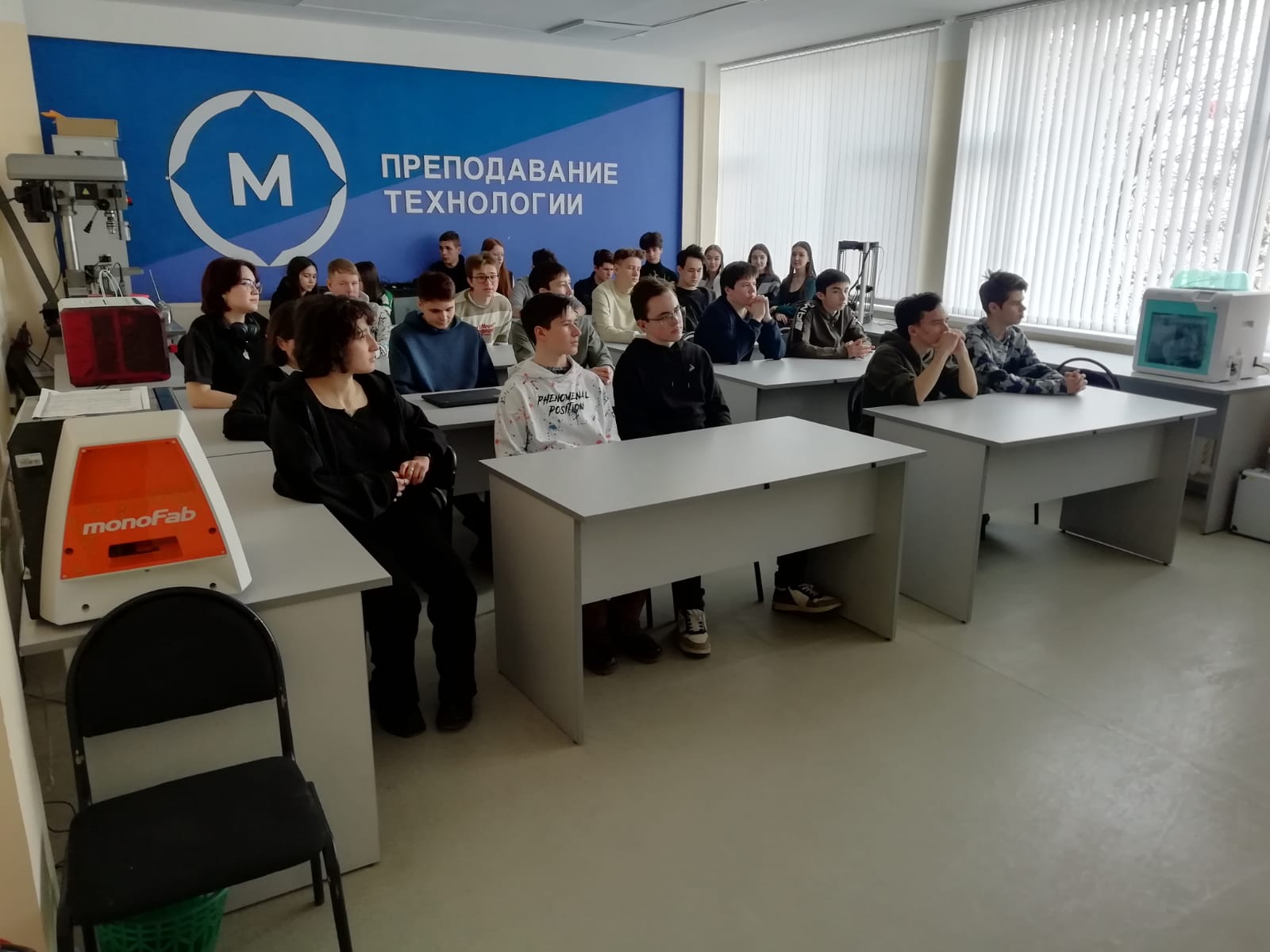 Гости ознакомились с оснащением лаборатории дополненной реальности, научно-исследовательским и технологическим оборудованием для изучения органических полупроводниковых материалов в широком диапазоне температур 6К-300К, а также учебными лабораториями инженерной и компьютерной графики, 3D-проектирования и печати, атомно-силовой микроскопии, рассмотрели станки с УПУ, робототехнику, беспилотные летательные аппараты и многое другое.