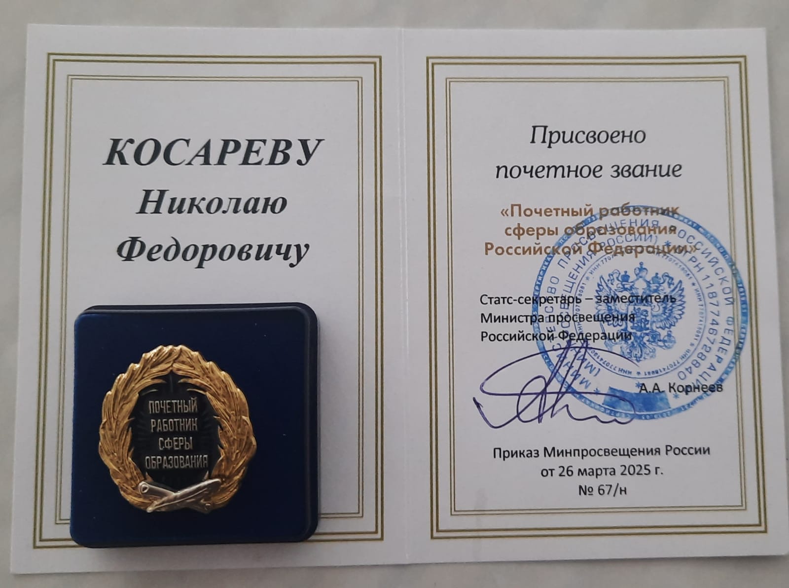 Доценту кафедры физики и нанотехнологий, кандидату педагогических наук Николаю Федоровичу Косареву  за заслуги и добросовестный труд в сфере высшего образования и соответствующего дополнительного профессионального образования было присвоено почетное звание «Почетный работник сферы образования Российской Федерации».