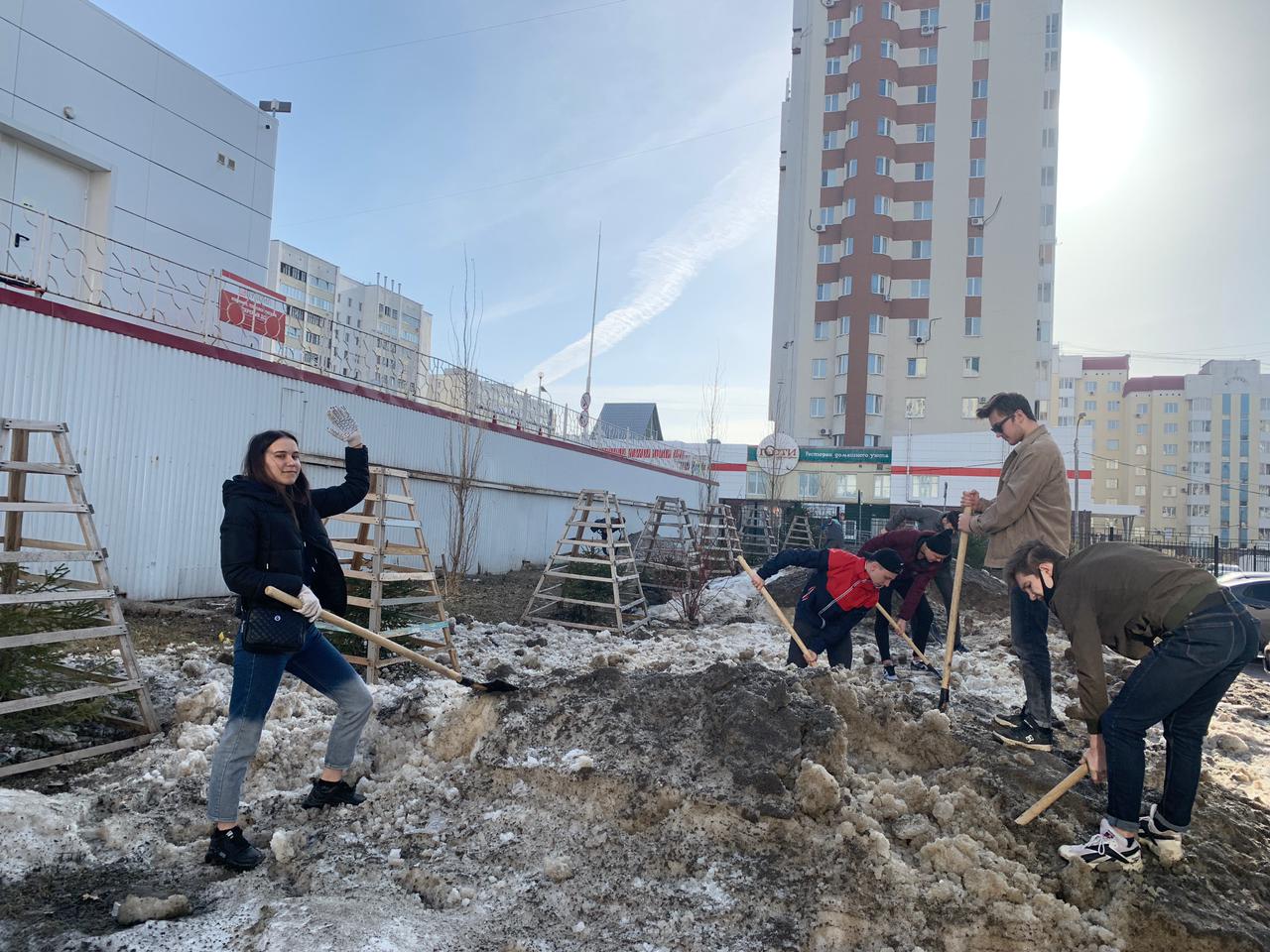 Внезапное потепление и резко растаявший снег оставил после себя кучу мусора. Студенты ИФК вышли на субботник для очистки территории вокруг 11 корпуса.