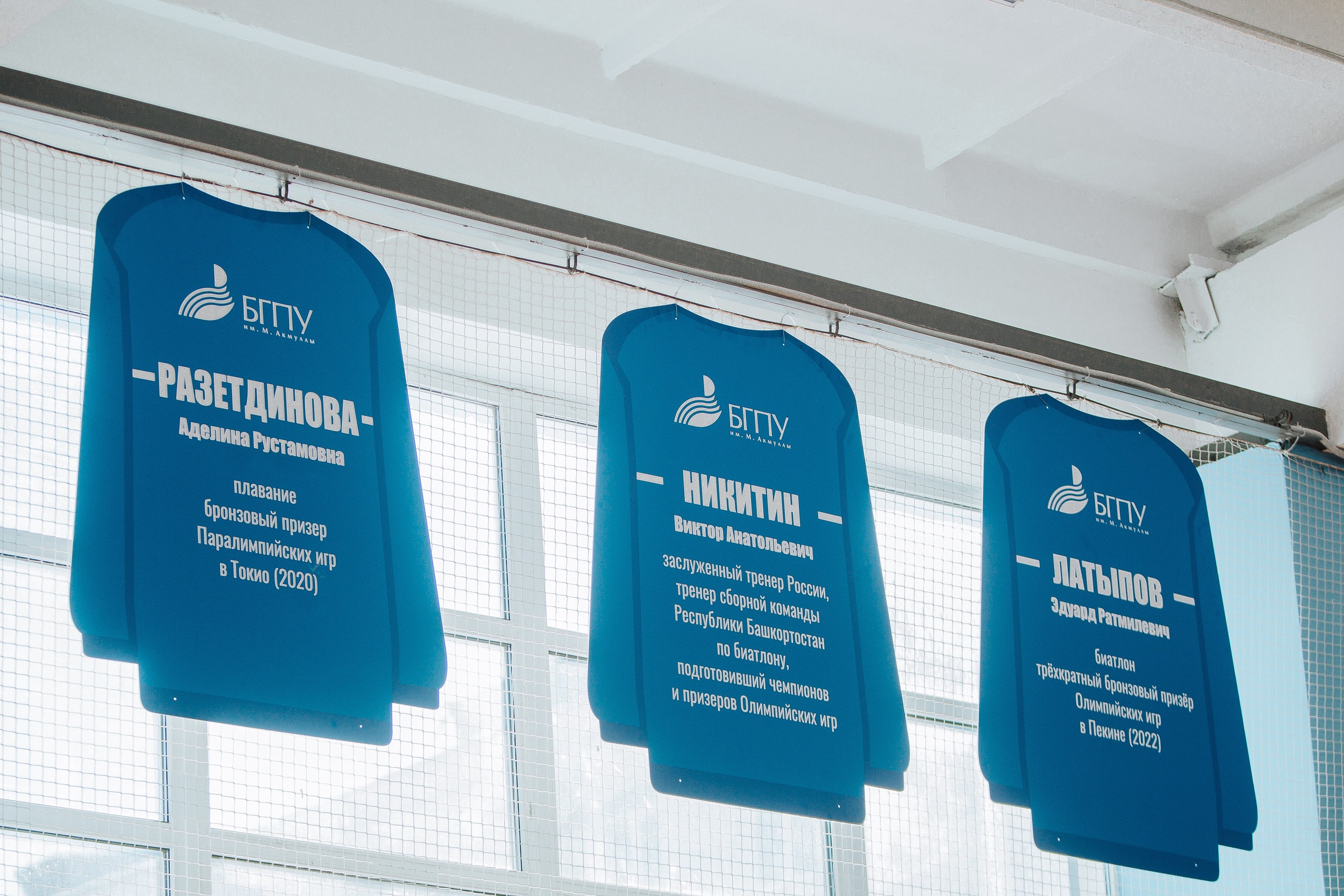 Далее в торжественной обстановке состоялось поднятие под своды спортивного зала БГПУ им. М. Акмуллы именного свитера российского биатлониста Эдуарда Латыпова.