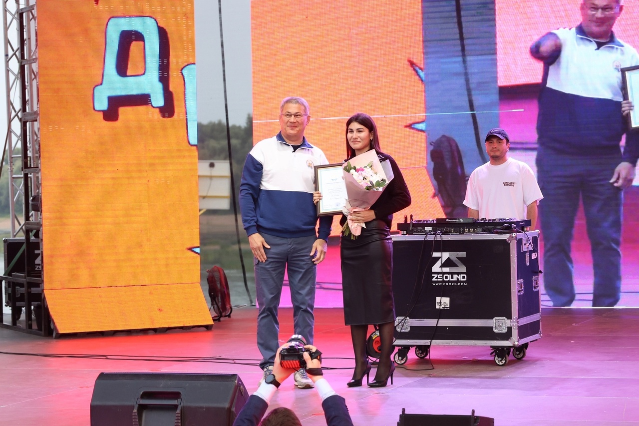 В праздничном мероприятии принял участие и Глава региона Радий Хабиров. Он поздравил жителей республики с праздником и вручил государственные награды активным представителям молодого поколения.