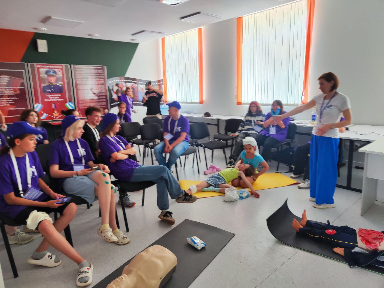 Содержание мастер-класса включало в себя: оказание первой помощи при обмороке, потере сознания, различных травмах, попадании инородного тела в дыхательные пути, клинической смерти. Участники смены научились пользоваться портативным дефибриллятором и отрабатывали алгоритмы первой помощи в очках виртуальной реальности, полученных по проекту Росмолодежь.Гранты.