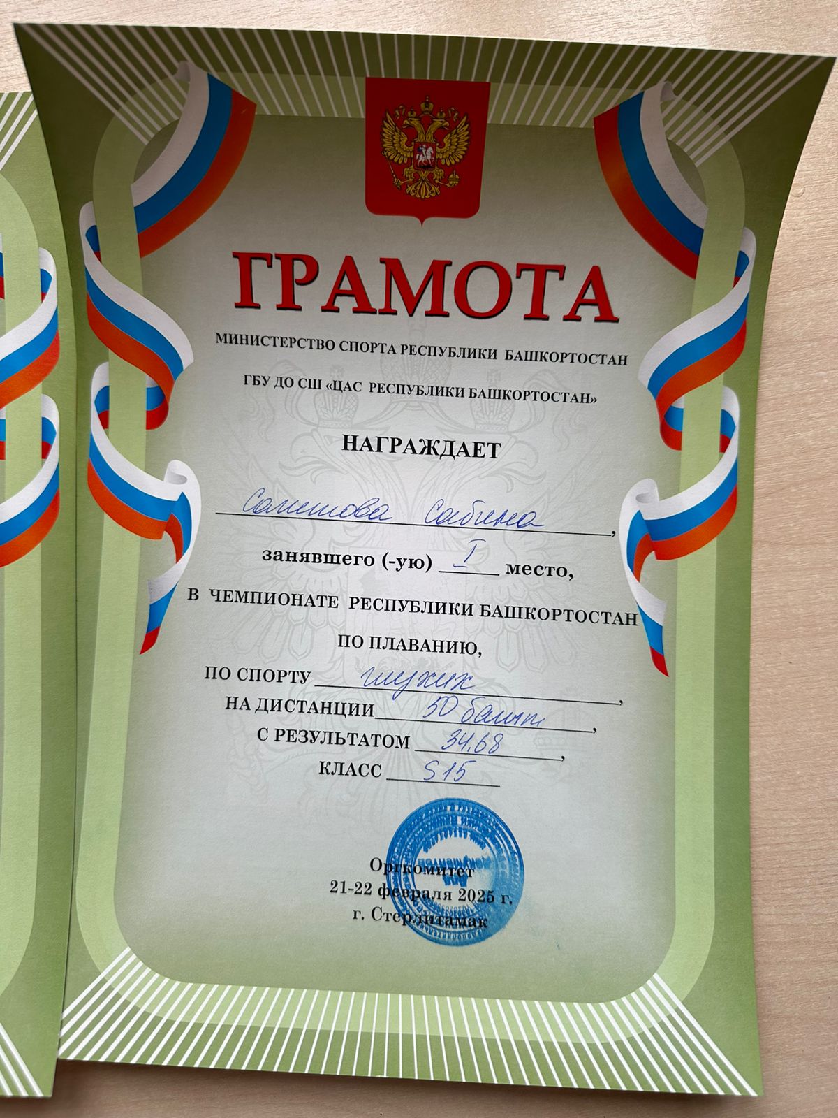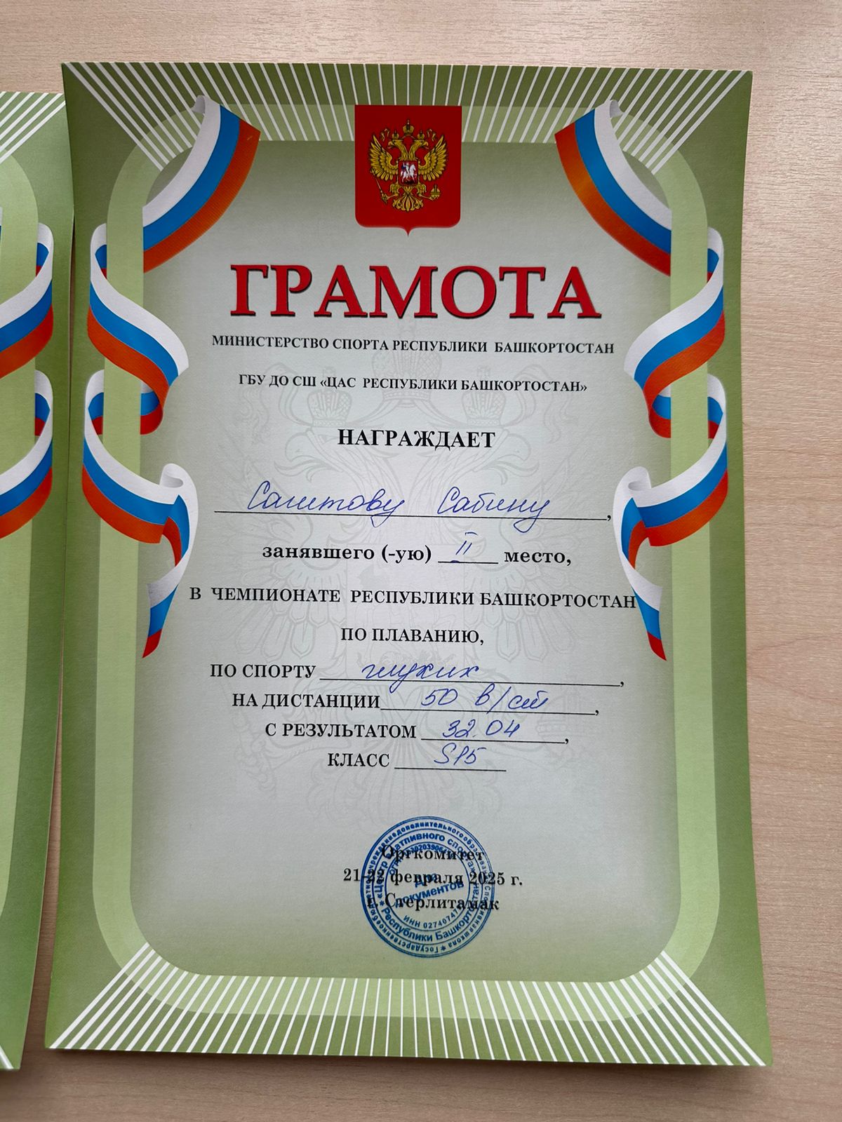 Личные дистанции 50м брасс 1 место, 50 вс 2 место, 50 батт 1 мест.