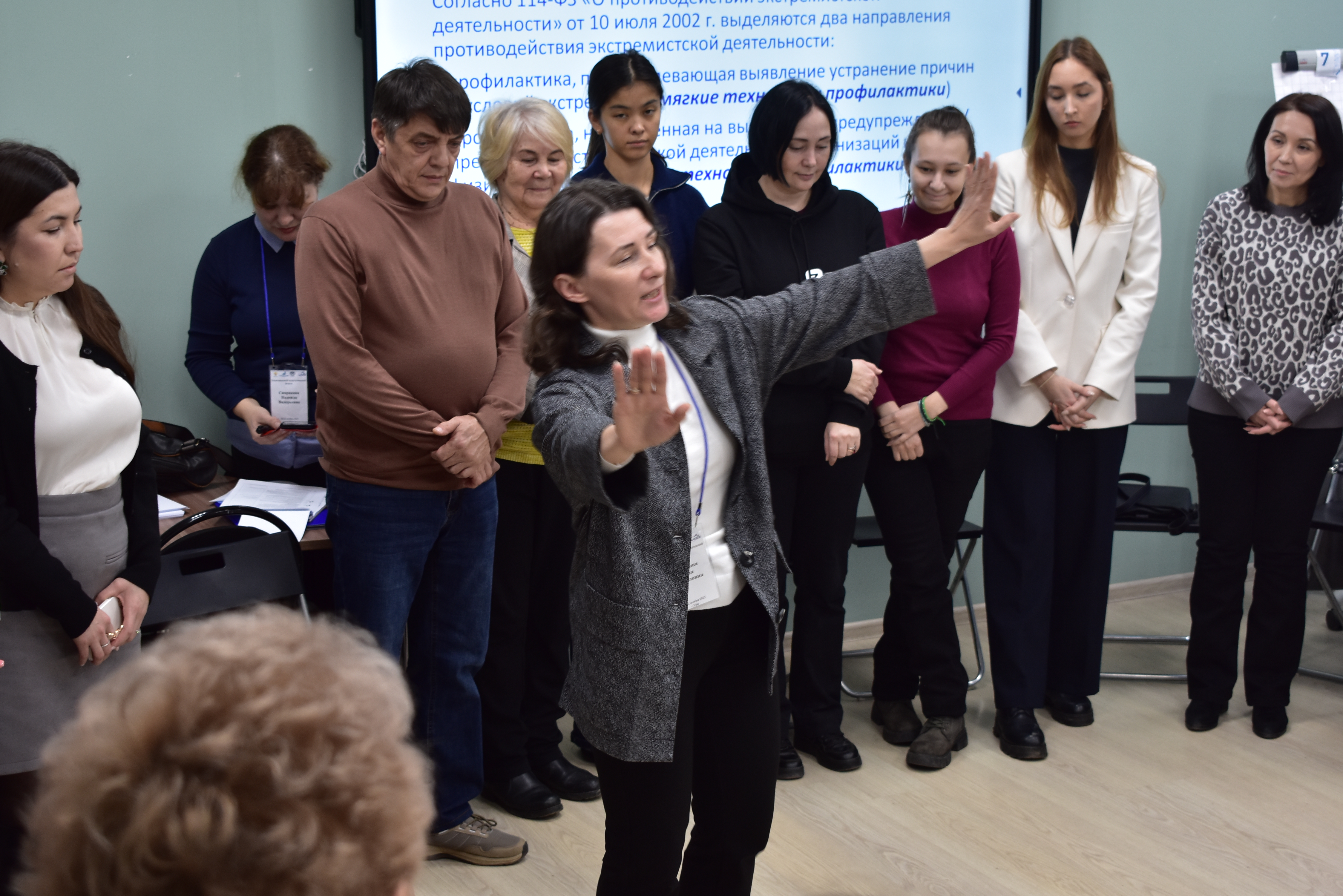 По завершении пленарной части участники конференции приняли участие в тренинге «Мягкие технологии профилактики экстремизма», который проводили Елена Харланова и Надежда Сиврикова. В ходе тренинга участники получили практические навыки и инструменты для работы с молодежной аудиторией, что является важным шагом в формировании эффективной системы профилактики деструктивного поведения.