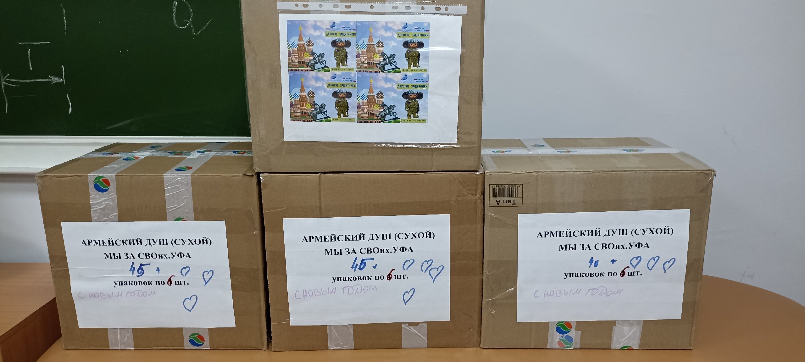 В центр помощи бойцам СВО и фронтовым госпиталям (с. Воинка Красноперекопского района Республики Крым) была доставлена очередная посылка, собранная в Акмуллинском университете.  На этот раз мы подготовили не только привычные сухие души, которые изготавливаются на кафедре охраны здоровья и безопасности жизнедеятельности, но и новогодние подарки, которые обязательно создадут новогоднюю атмосферу и поднимут настроение нашим защитникам.  Поздравления, написанные студентами, добавили тепла и искренности в каждый подарок.