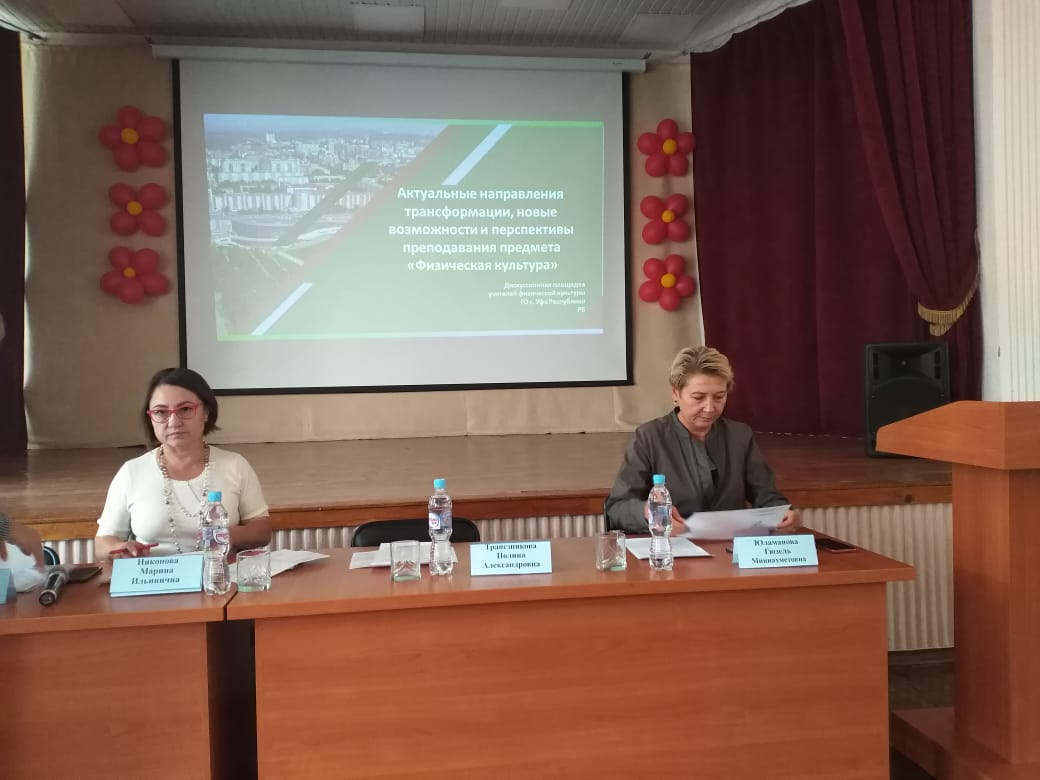 В МБОУ Школа №49 ГО г.Уфы 15 сентября прошла дискуссионная площадка учителей физической культуры города Уфы, на тему: Актуальные направления трансформации, новые возможности и перспективы преподавания предмета "Физическая культура". В данном мероприятии кафедра Теории и методики физической культуры и спорта приняла участие, д.п.н.,профессор кафедры Юламанова Г.М. подвела итоги олимпиадного движения по предмету физическая культура и подробно остановилась на этапах подготовки обучающихся. Также на этом совещании были заслушаны доклады ведущих специалистов курирующие вопросы  физической культуры и спорта в образовательных учреждениях, руководителей районных методических объединений, учителей физической культуры.